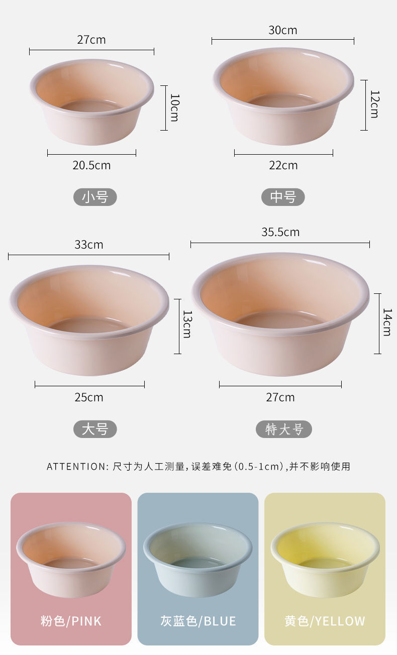 厚いプラスチックの洗面器の家庭用の大きいサイズの洗濯のたらいの学生の寮の足のたらいの赤ちゃんの小さい洗面器