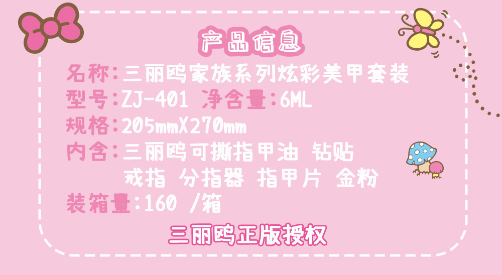 正規版サンリオ女の子子供プリンセス水性剥ぎ取りマニキュアステッカーセット3-6歳おもちゃ