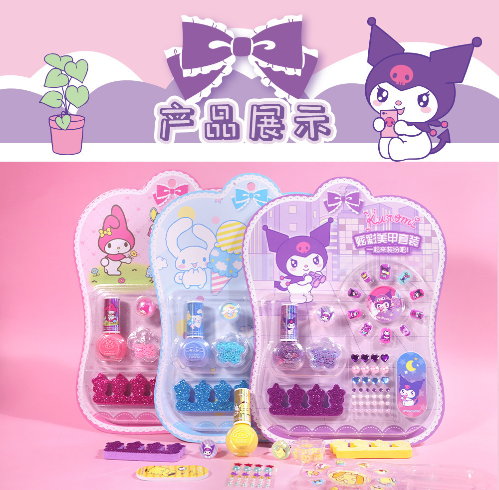サンリオクロミ子供用リップスティックマニキュアネイルステッカーセット子供用ネイルセットおもちゃ