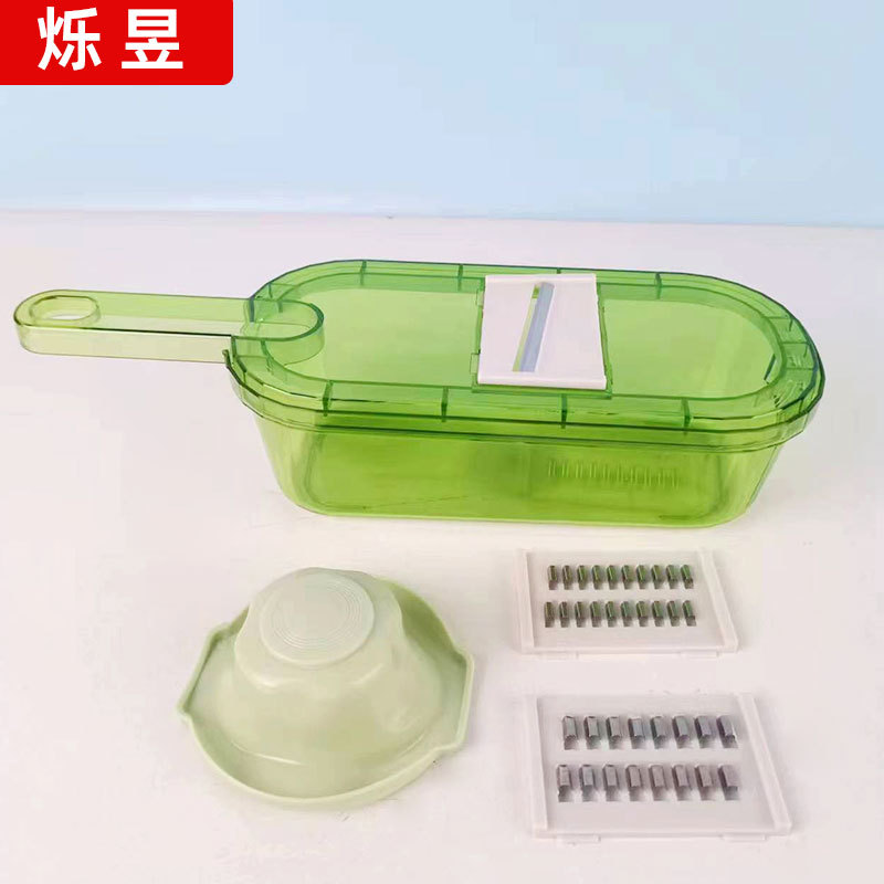 家庭用キッチン手動野菜カッター、ジャガイモと大根の細切り、スライサー、水切りかご、野菜カッター、10点セット