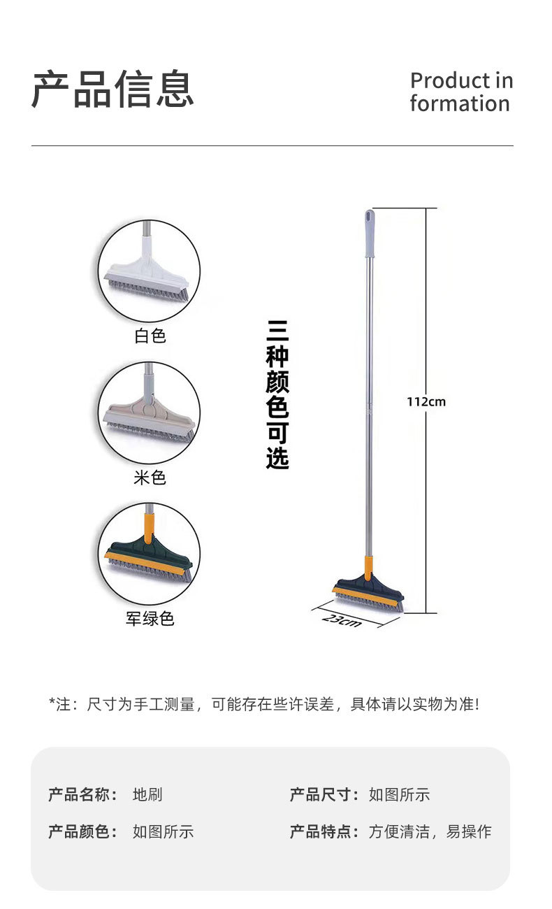 卫生间瓷砖地板刷刮板刷无死角缝隙刷硬毛地刷二合一浴室扫洁刷