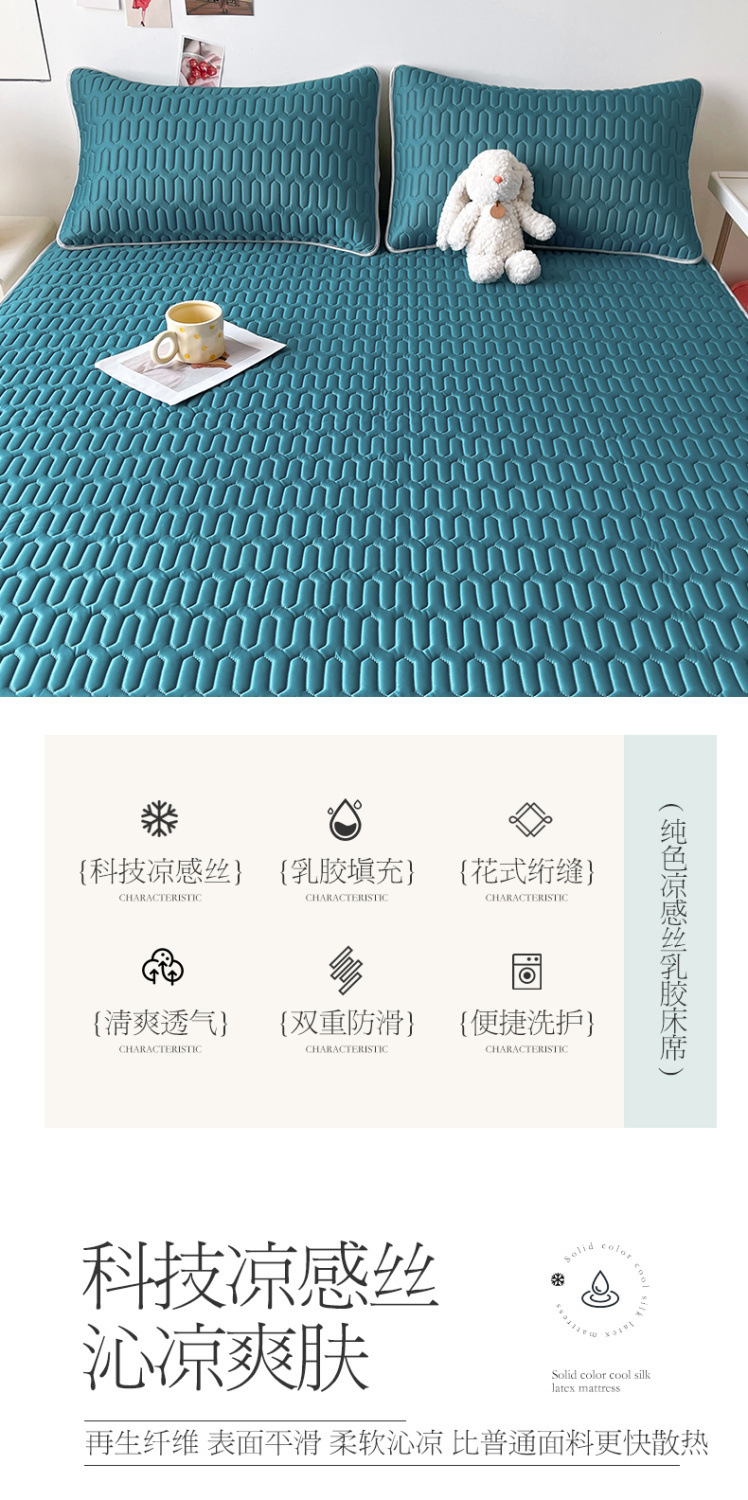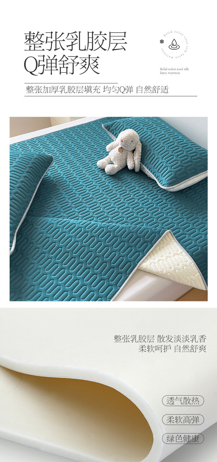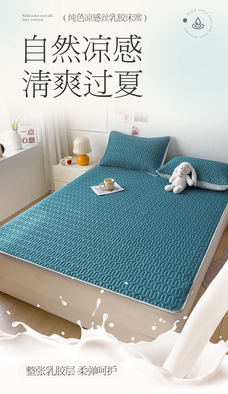 純色ラテックス凉席ベッド笠夏学生寮用凉マットセット家庭用洗濯可折り畳みソフトマット