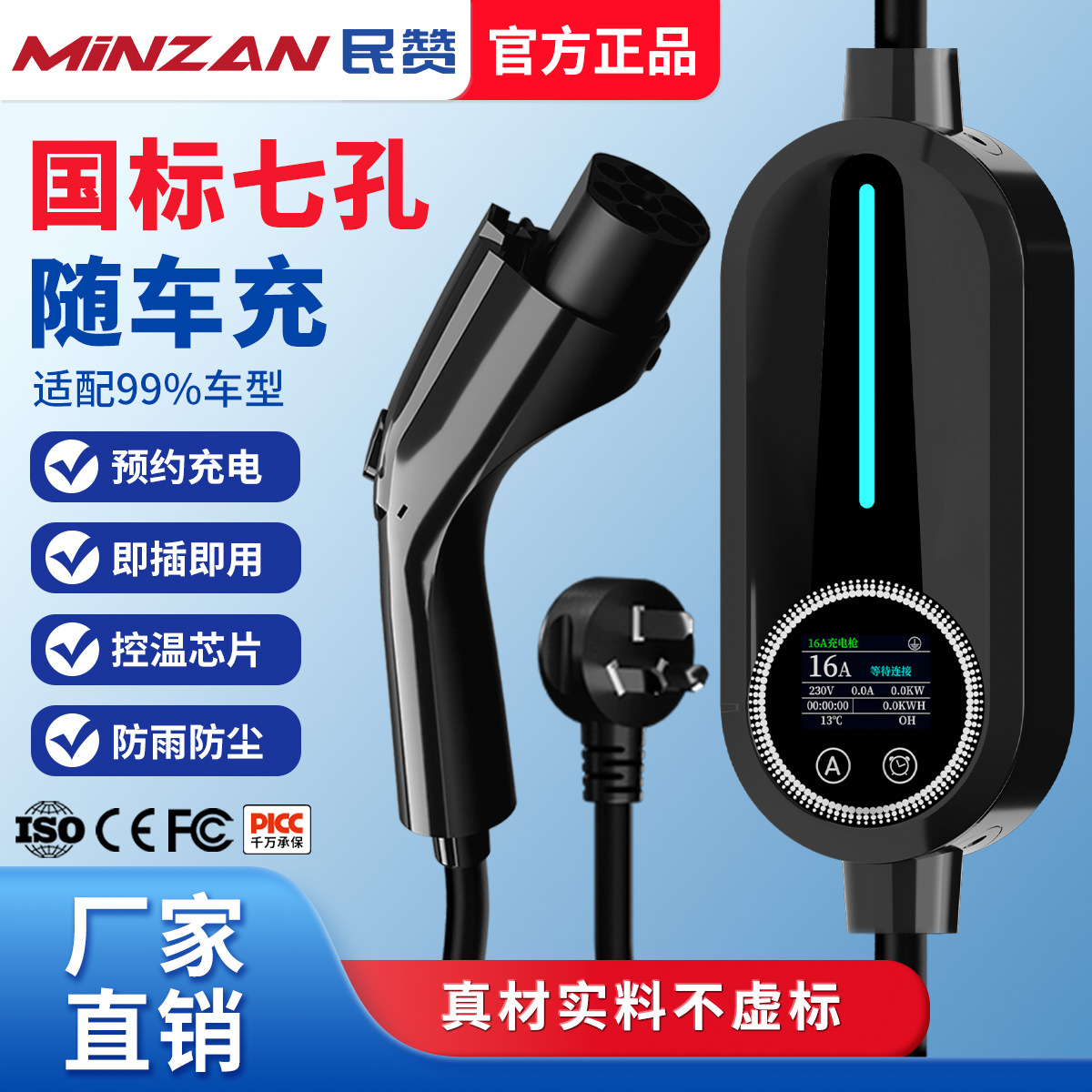 7KWポータブル充電ガン 16A/32A 新エネルギー電気自動車車載充電器 汎用 BYD 3.5新