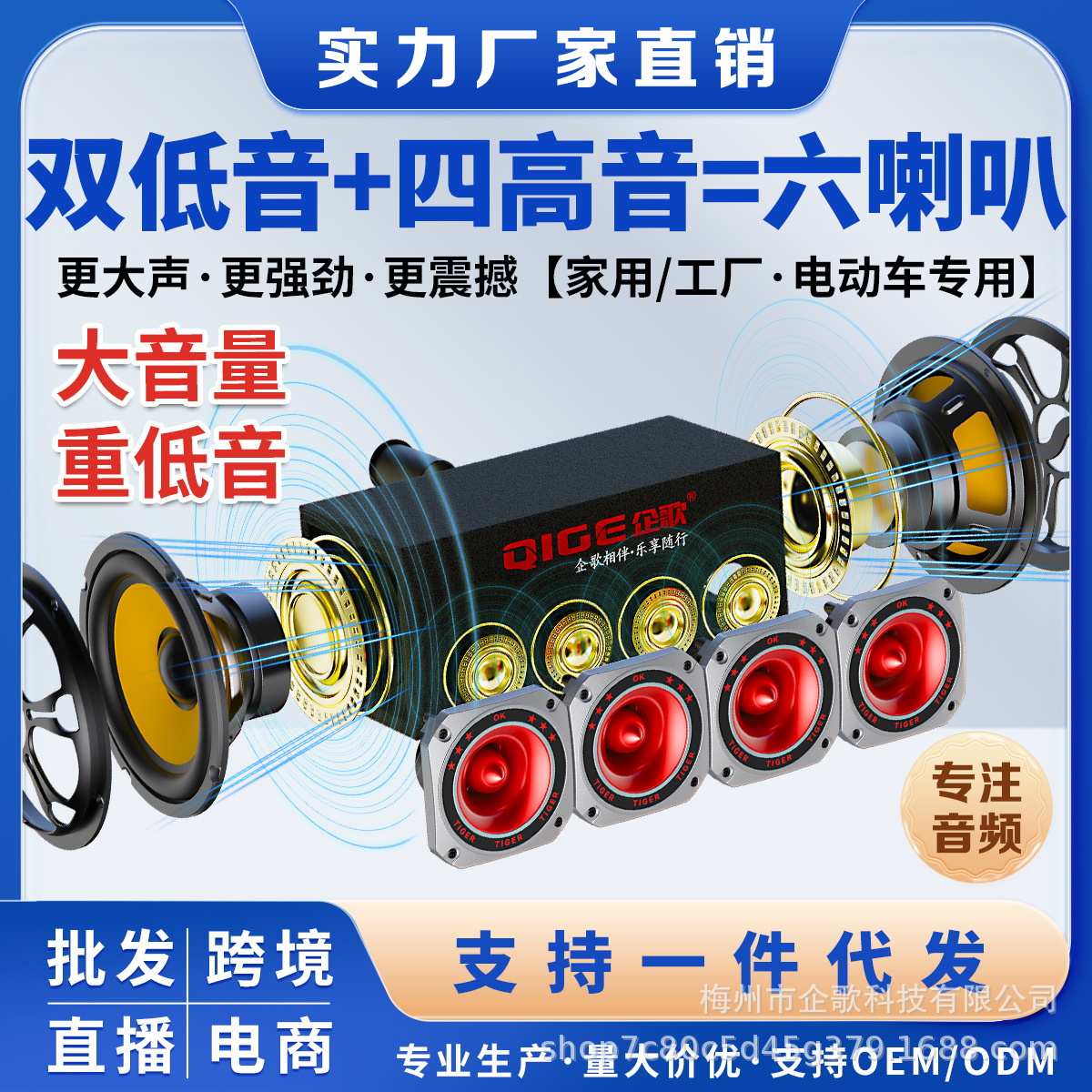 ダブル低音6ラッパ爆天砲家庭用スピーカー電気自動車音響トラック車大出力重低音bluetooth