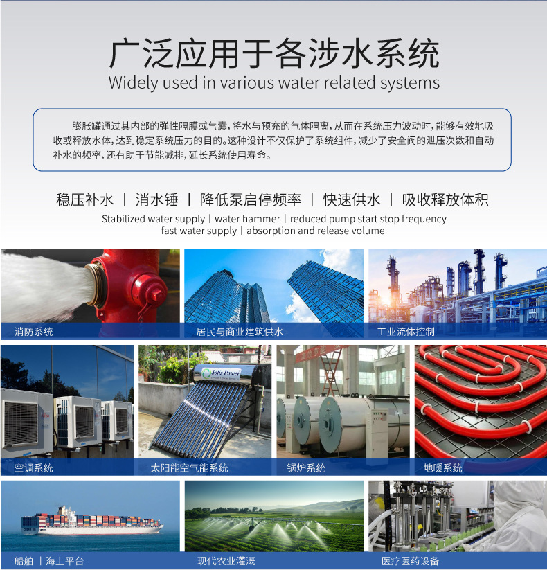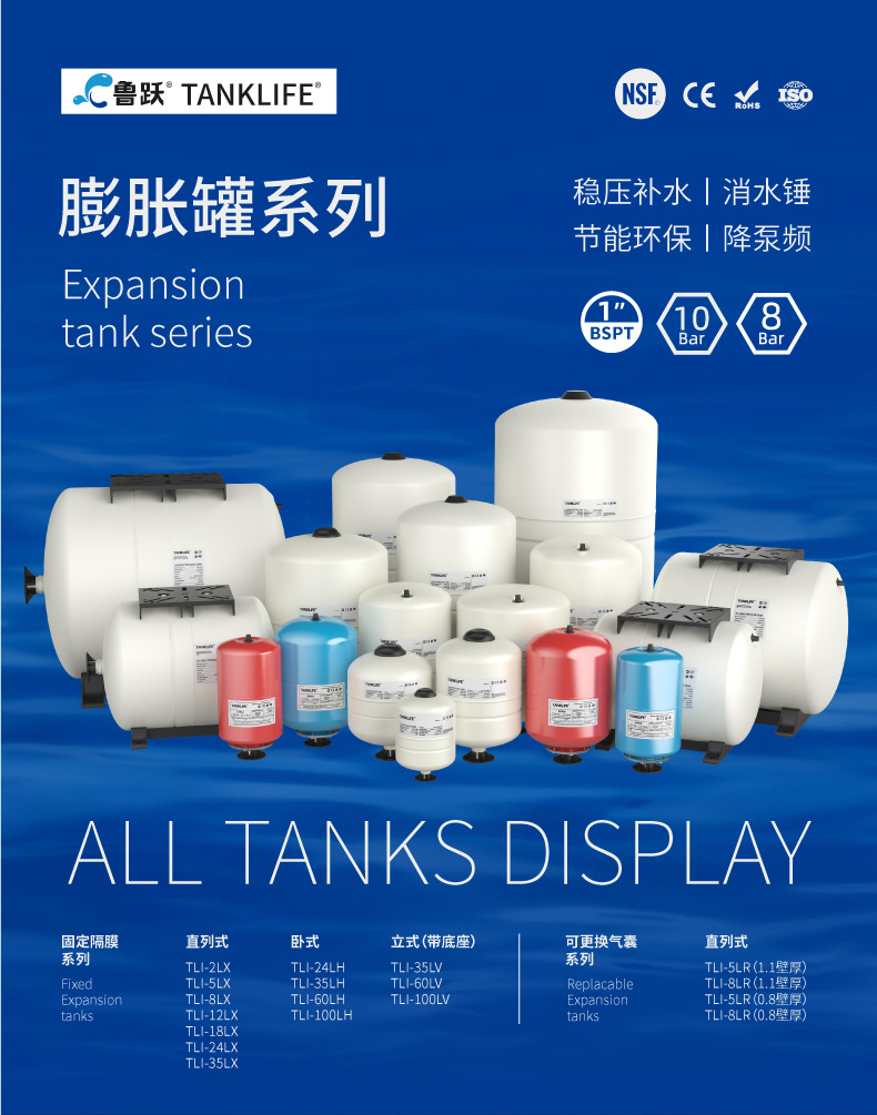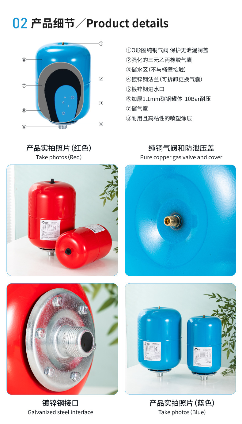魯躍8l消水ハンマー圧力タンクダイヤフラム炭素鋼タンク給水圧力タンク安定化補水膨張タンク緩衝タンク