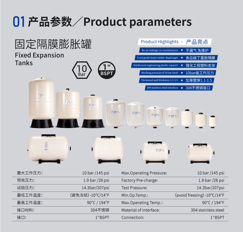 呂躍5Lバッグ式膨張タンク1寸口炭素鋼圧力タンク耐熱安定タンク10bar気圧タンク6分口