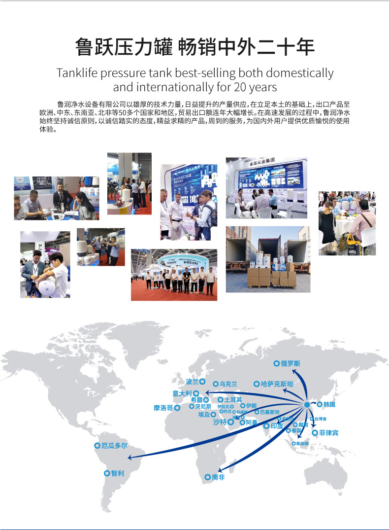 魯躍圧力タンク水ポンプ安定化タンク膨張タンク消水ハンマーエアバッグ空気エネルギー緩衝タンクダイヤフラム式圧力タンク