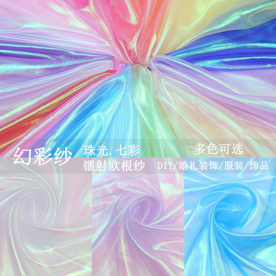亮糸欧根紗平七彩幻彩透明ガラス欧根紗レーザー布亮糸舞台衣装衣装生地