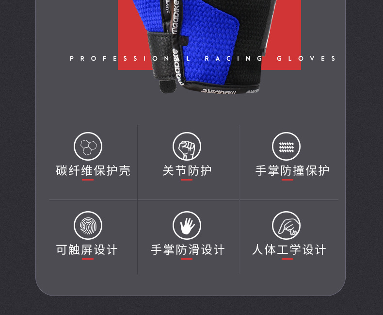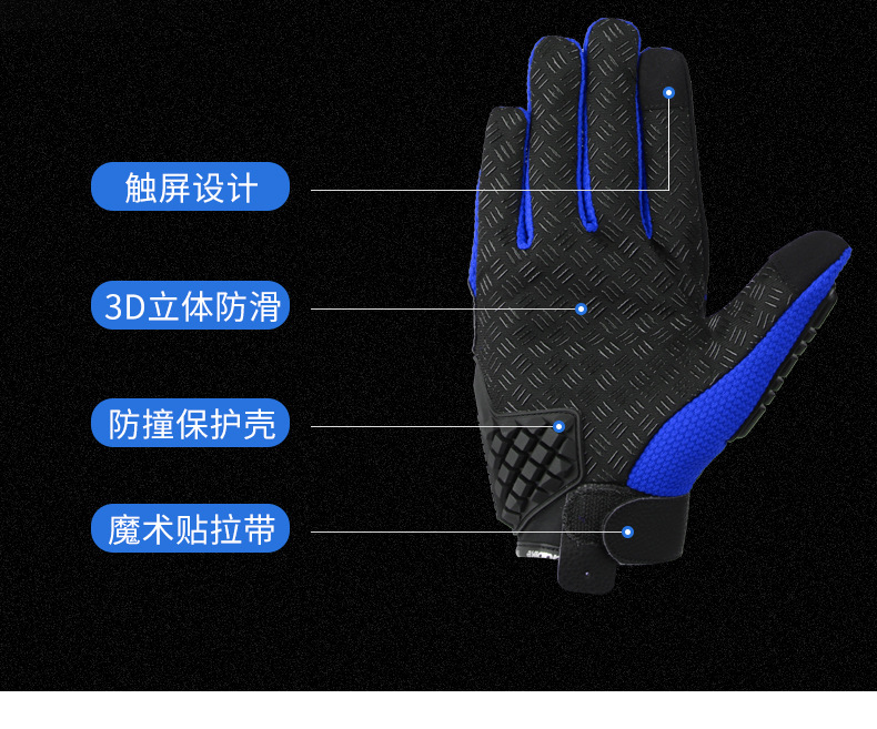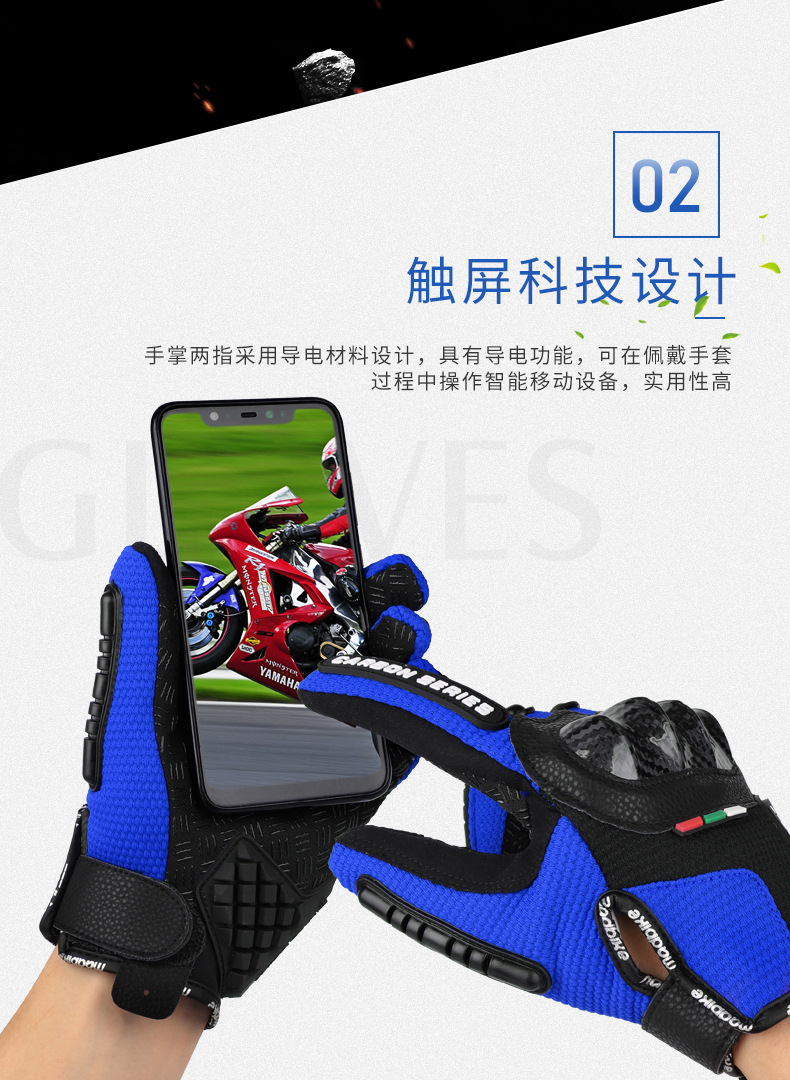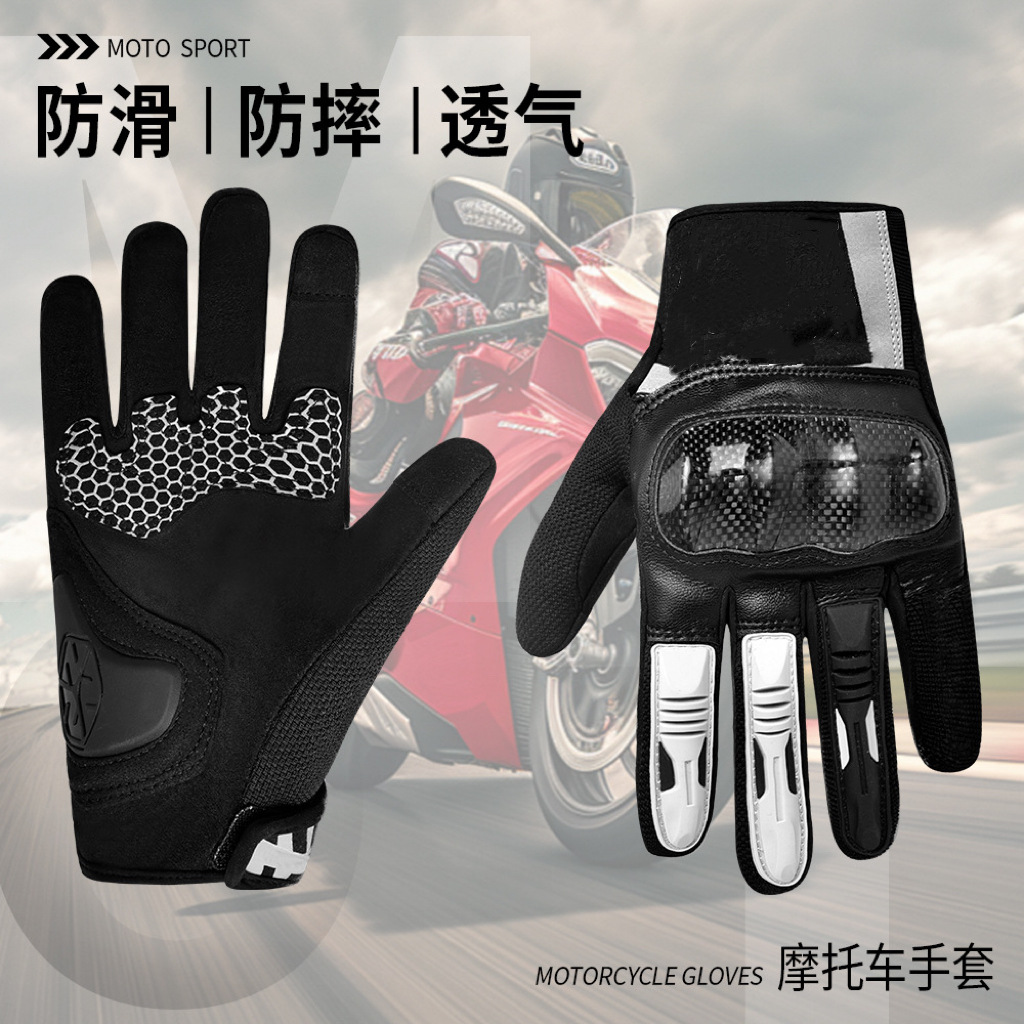 摩托车手套可触屏冬季防风碳纤维越野机车摩托车骑行手套四季通用