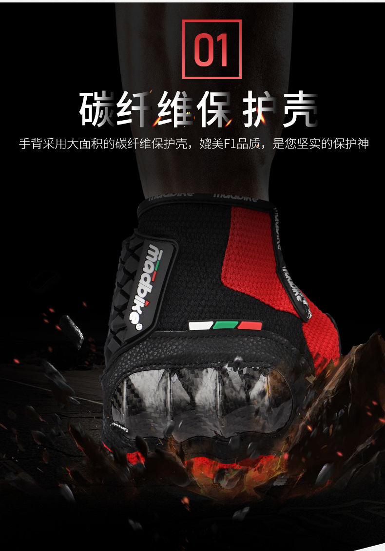 マッドバイク春夏秋モデル炭素繊維保護ケースの掌パッドタッチパネルバイクの通気防止手袋マッド06