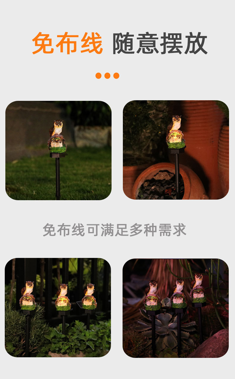 クロスボーダー屋外ガーデンフクロウledソーラーライト庭シミュレーション動物樹脂芝生フロアライト卸売