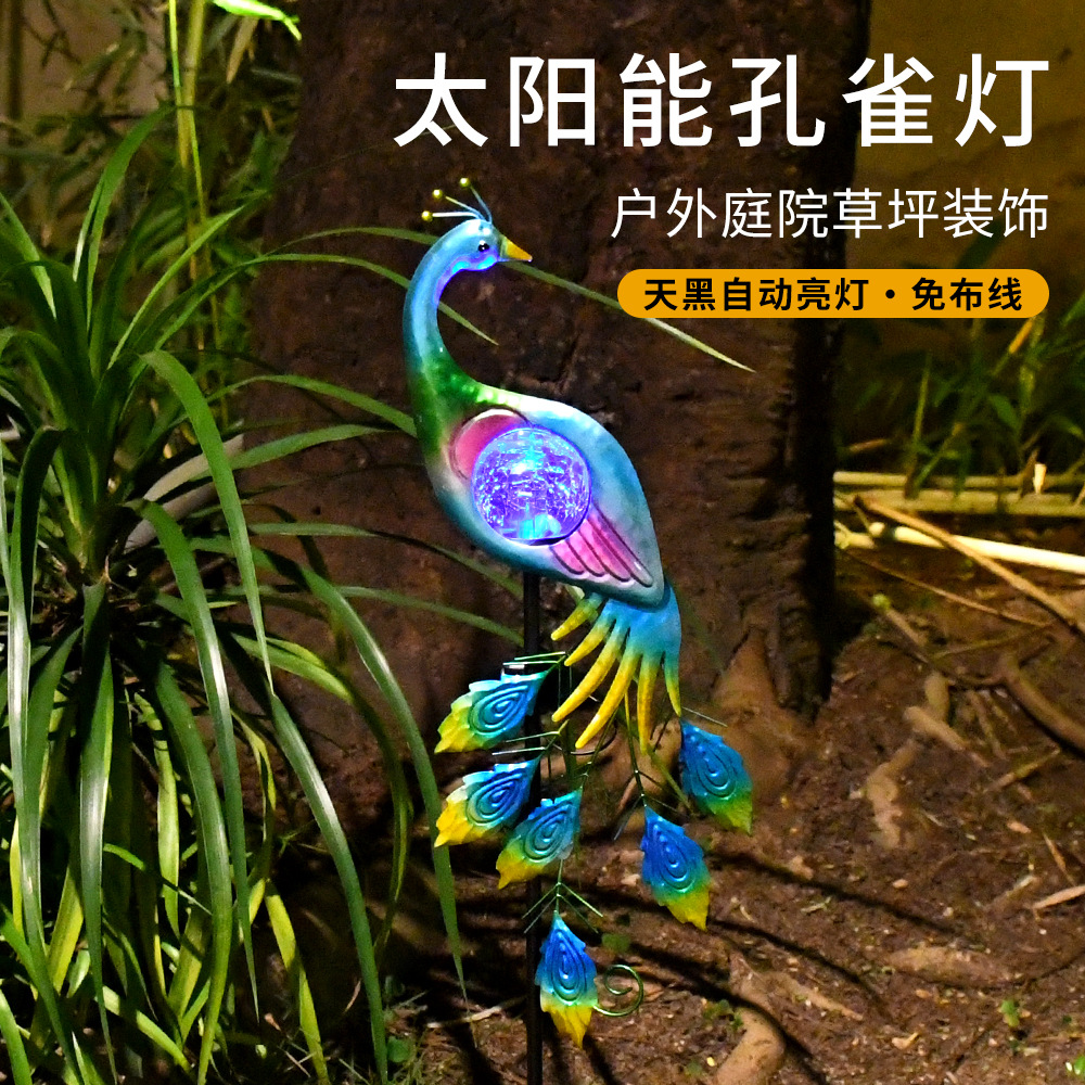 国境を越えた新型太陽エネルギー両面孔雀クラックランプ鉄芸シミュレーション動物芝生ランプ屋外花園床ランプ