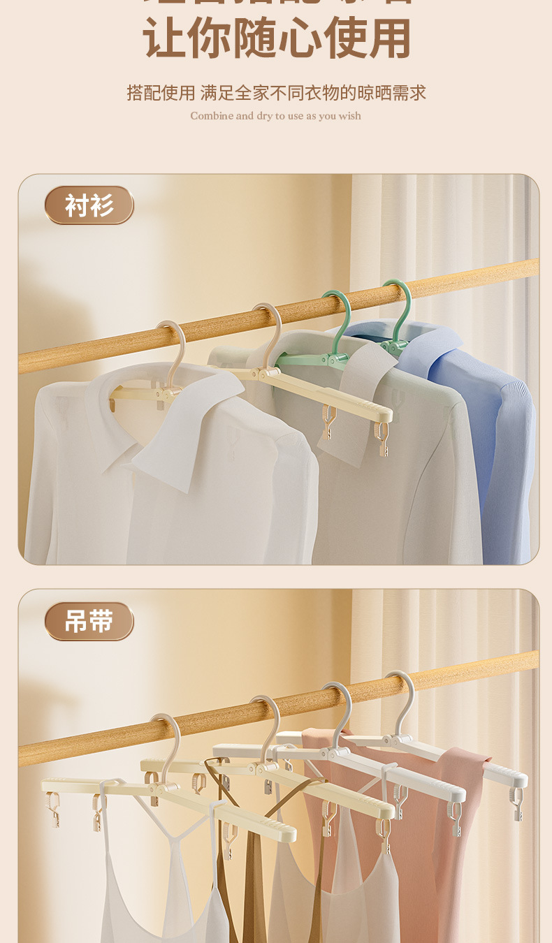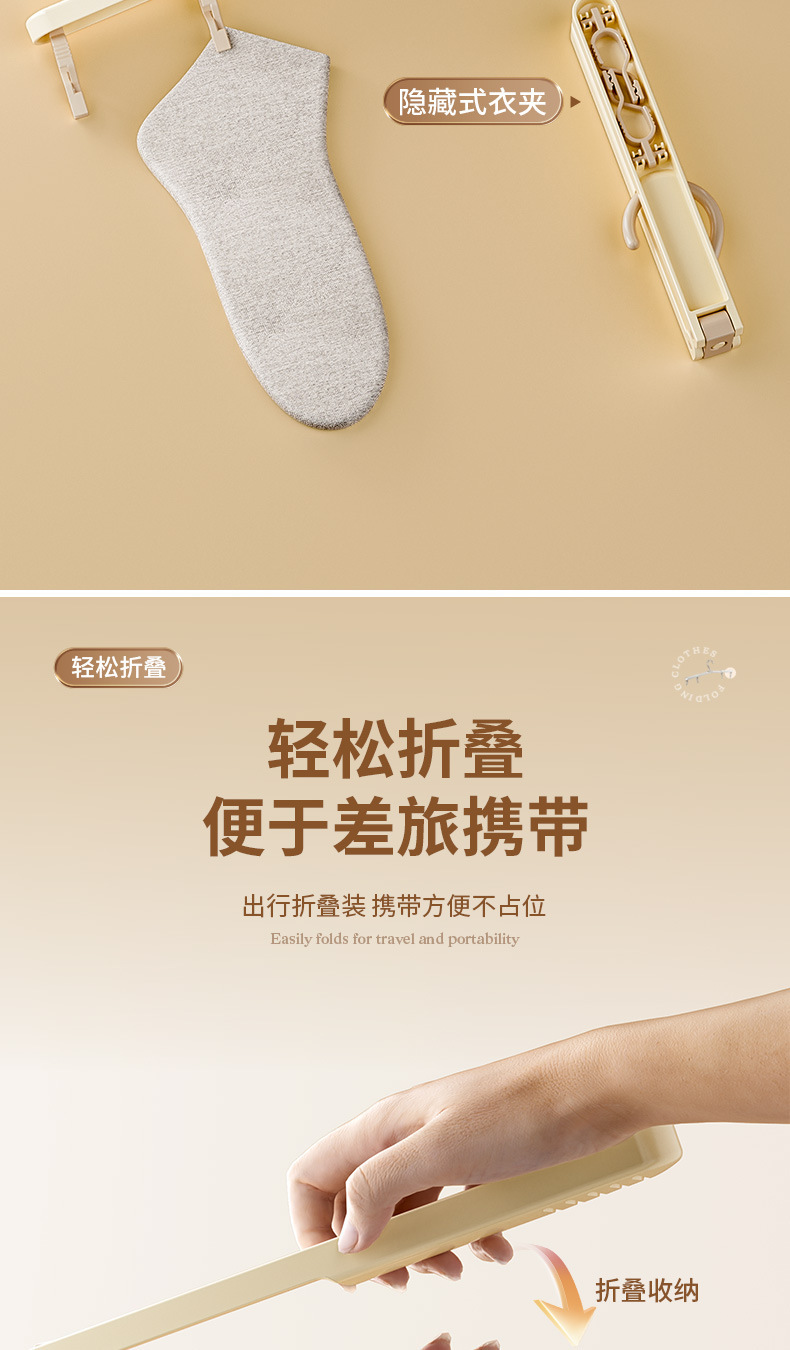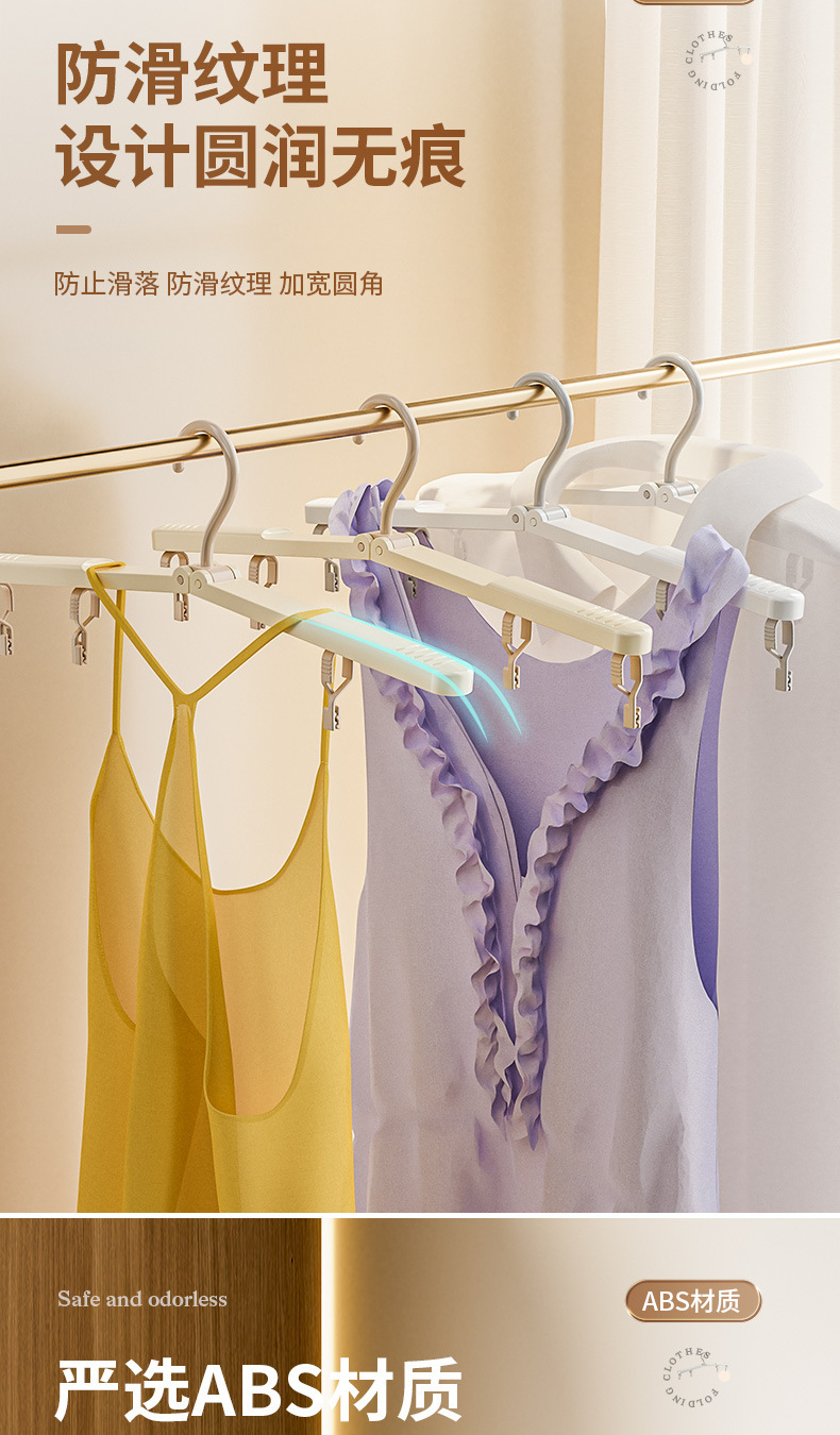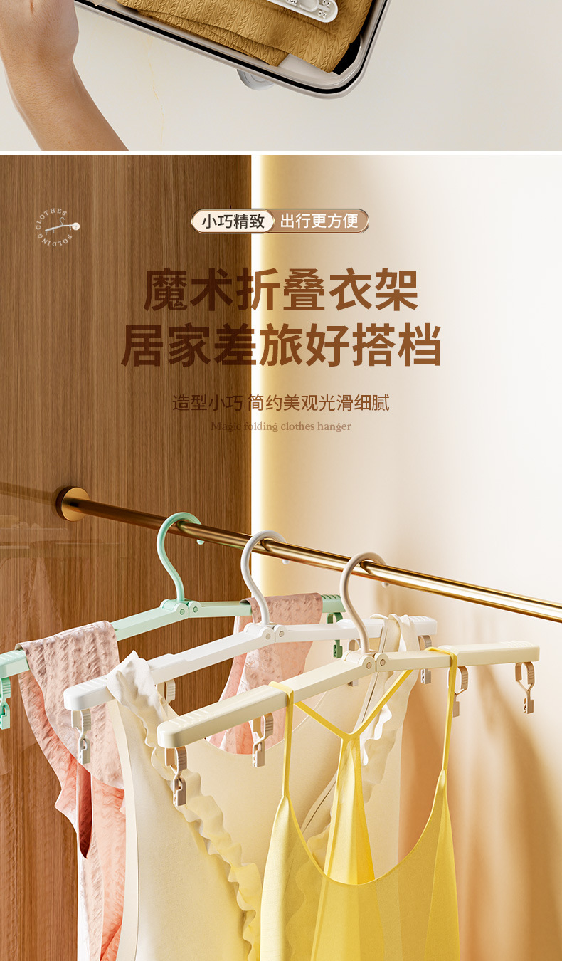 折り畳みハンガー旅行無痕ハンガークリップ付き携帯旅行出張ホテル日焼け神器ハンガー