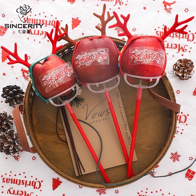 圣诞节多功能苹果固定托万能固定胶托diy鹿角平安果花束花店包装