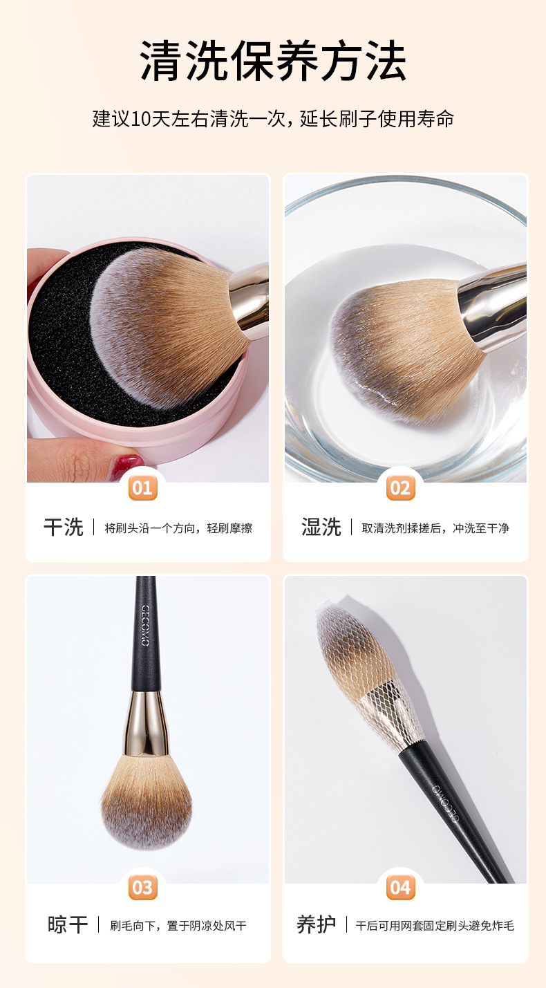 Gecomo平頭点彩頬紅ブラシは粉を食べないで化粧しやすい棒の柔らかい毛化粧ブラシ化粧師の化粧道具