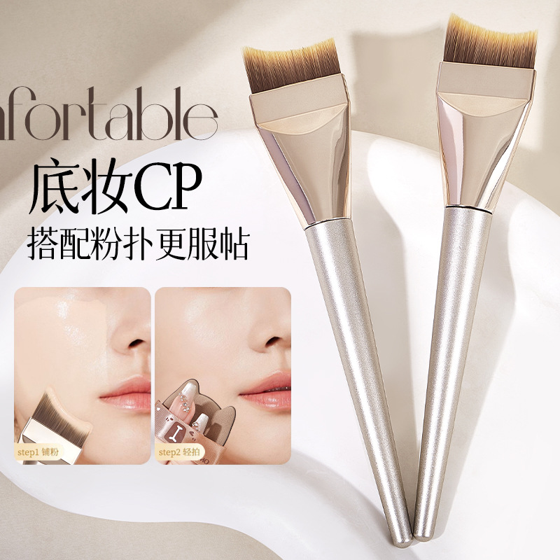 GECOMO シームレス三日月ファンデーションブラシ、軽くてシームレスなフラットヘッド多機能フィッシュテールブラシ、ウェットおよびドライメイクブラシ