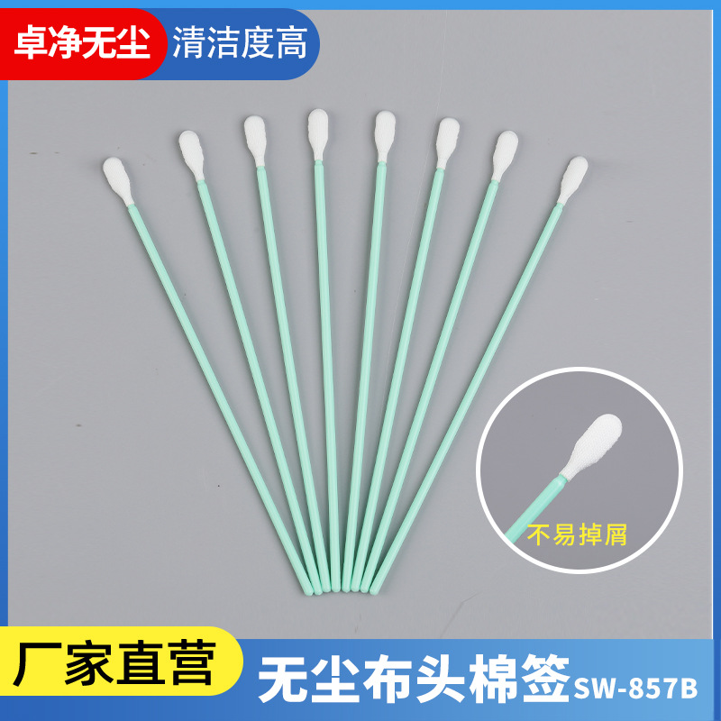 ¡擦拭棒杆采用聚丙烯做原料,头采用连续长丝聚脂纤维做原料并在无尘室做净化加工,具有极低的发尘量、吸液性强、柔软洁净等特点。完美的封边收口和热放射技术使头部成功的固定在手柄上,避免了使用粘合剂所带来的污染。![]() ![]() ![]() ![]() |