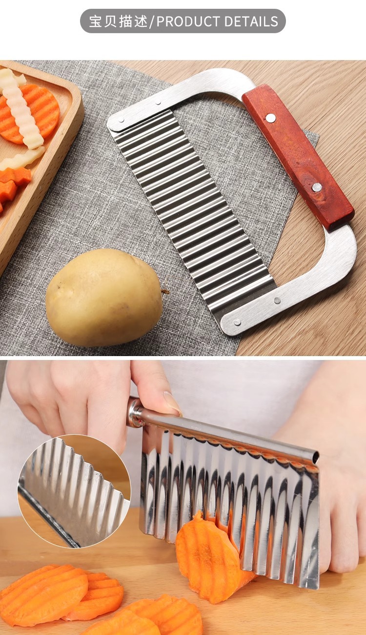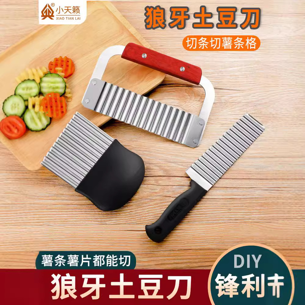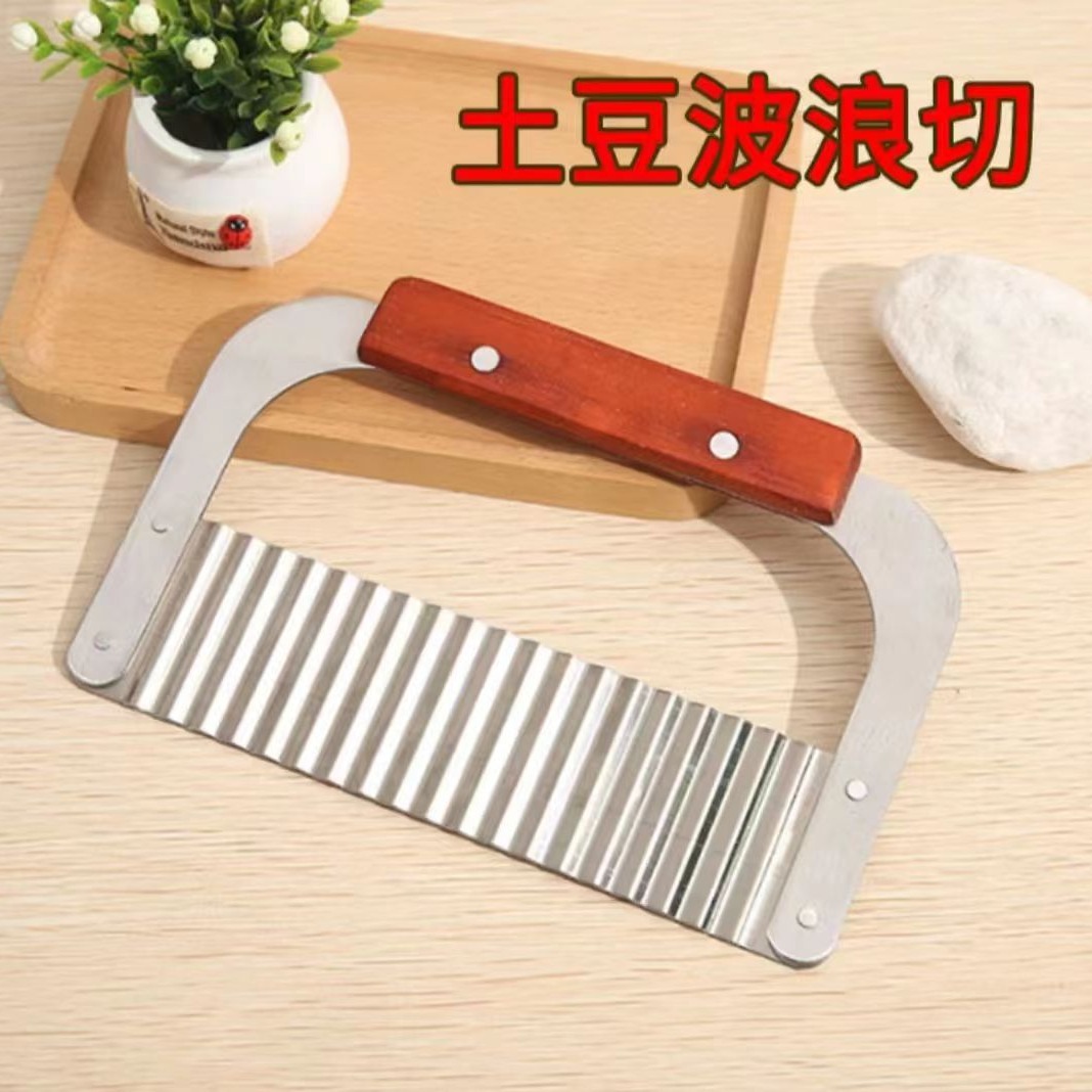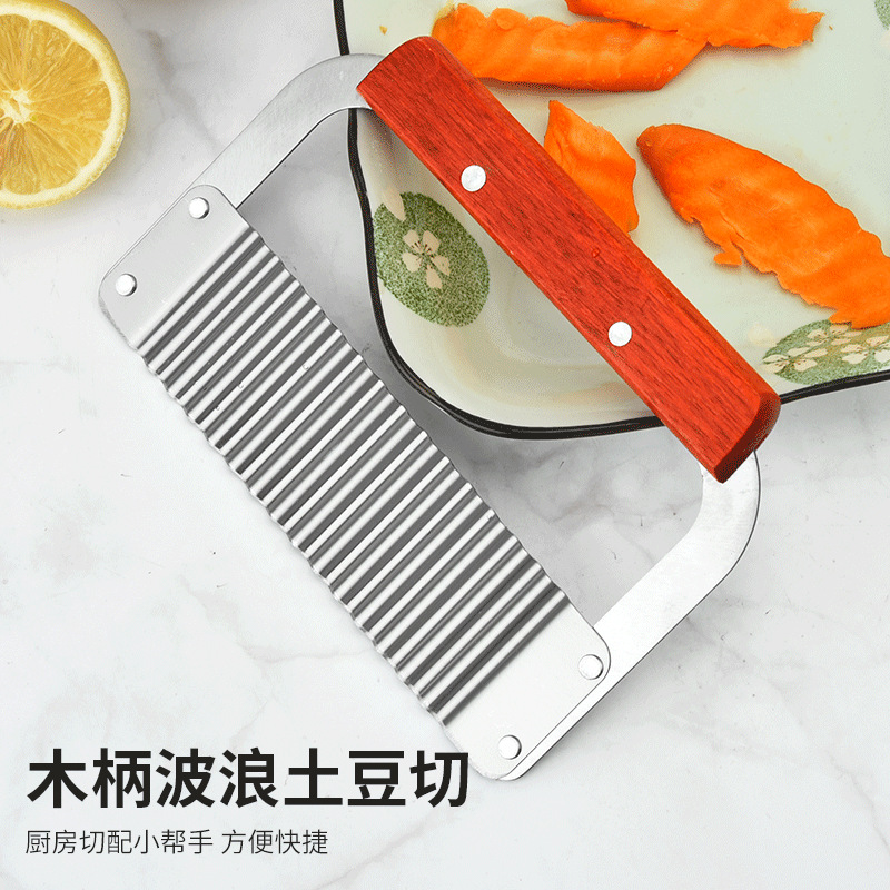 キッチンツールステンレス木柄波切りポテトナイフ波切りナイフクリエイティブジャガイモ切り狼