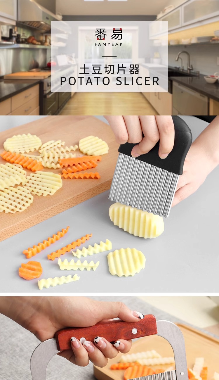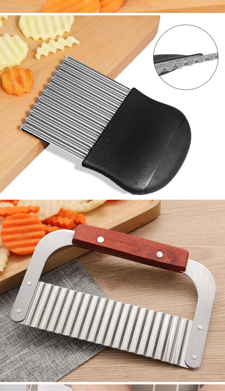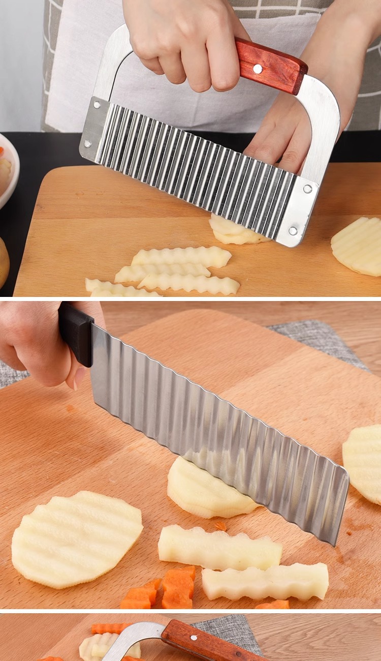 キッチンツールステンレス木柄波切りポテトナイフ波切りナイフクリエイティブジャガイモ切り狼