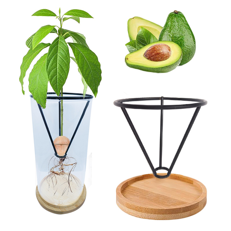 跨境专供牛油果核水培高硼硅玻璃杯竹木底座三件套定制