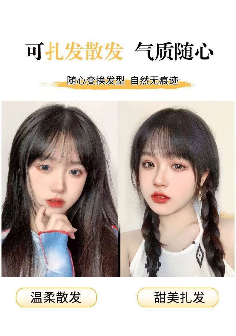 工場卸売り真髪3d空気前髪女網赤偽前髪外反高頭トップかつら