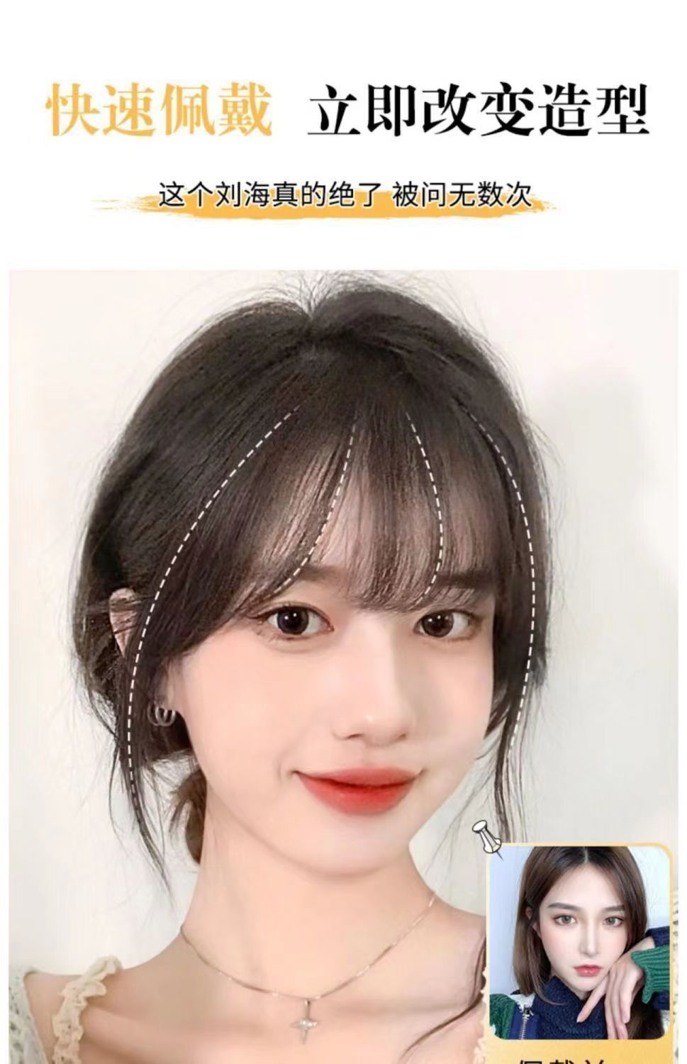 エアバングウィッグ 女性用 自然な前髪 本物の髪の毛の前髪ウィッグ エクステ 年齢を若く見せる シミュレーションヘア 前髪ウィッグ 夏用