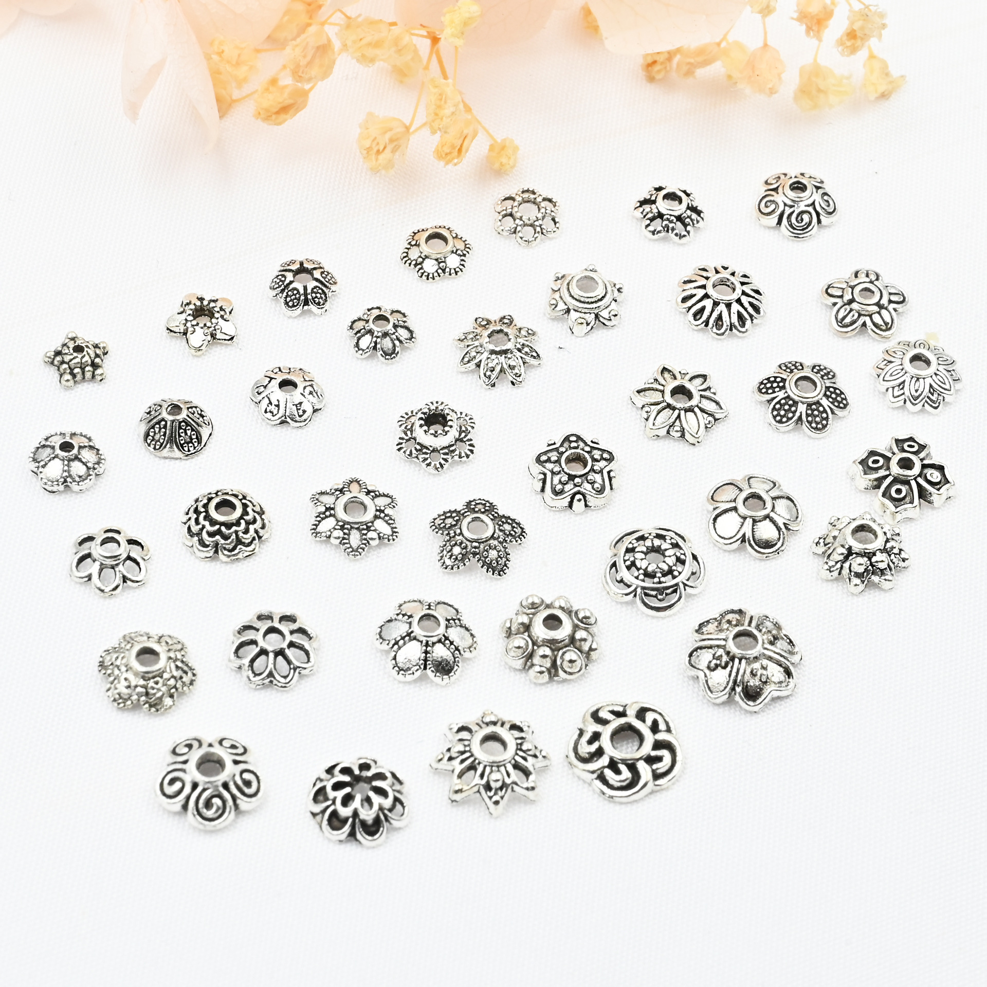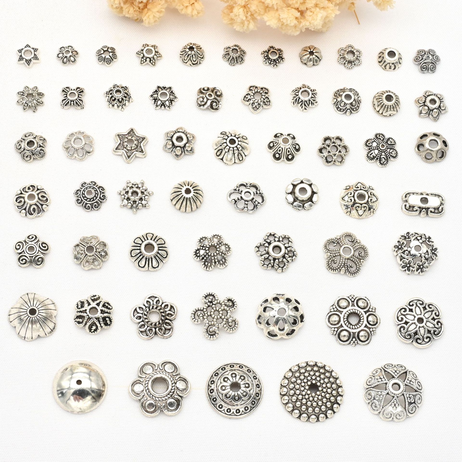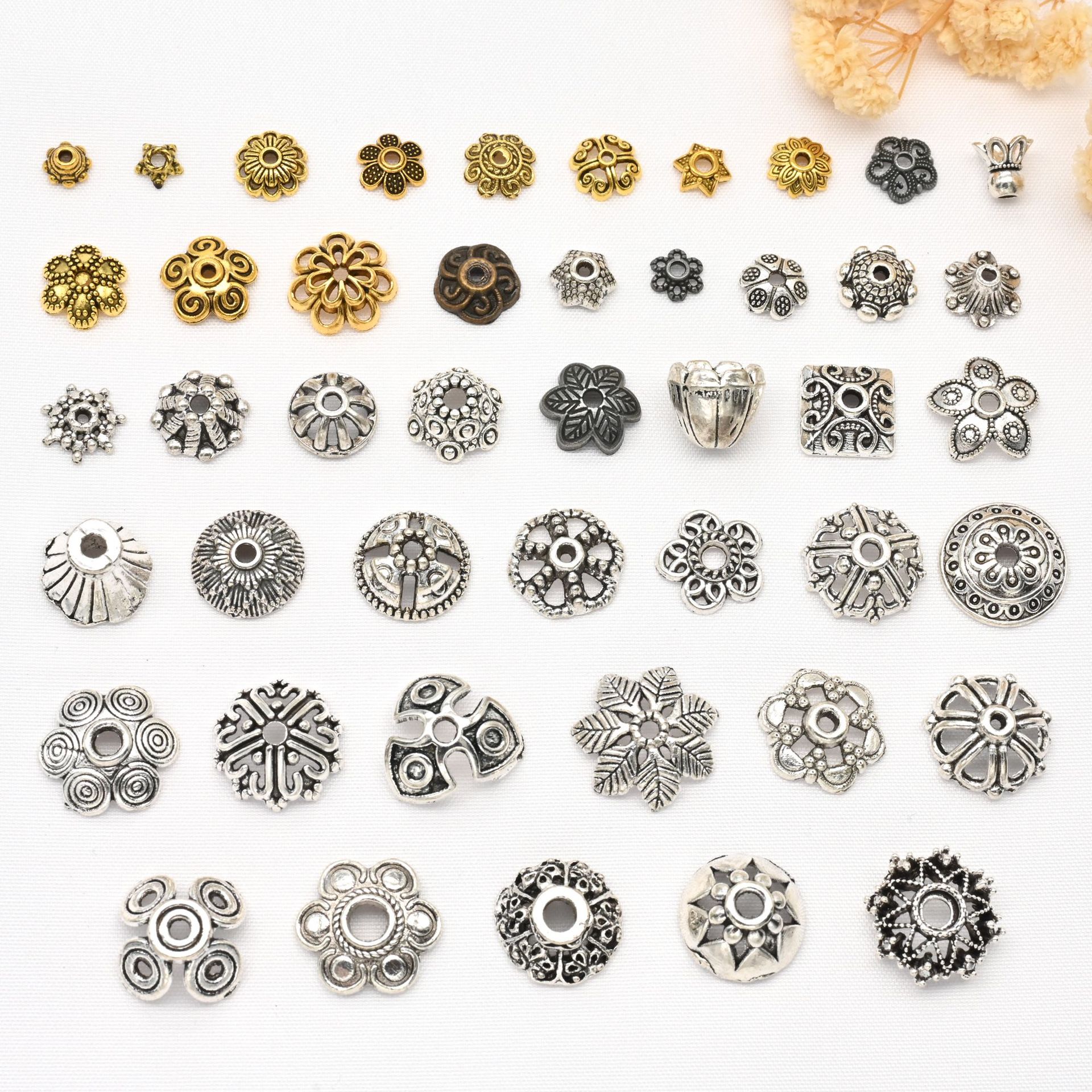 古銀色チベット銀合金透かし彫り花托隔珠花帽珠托帽子古風diyブレスレット手串アクセサリー部品