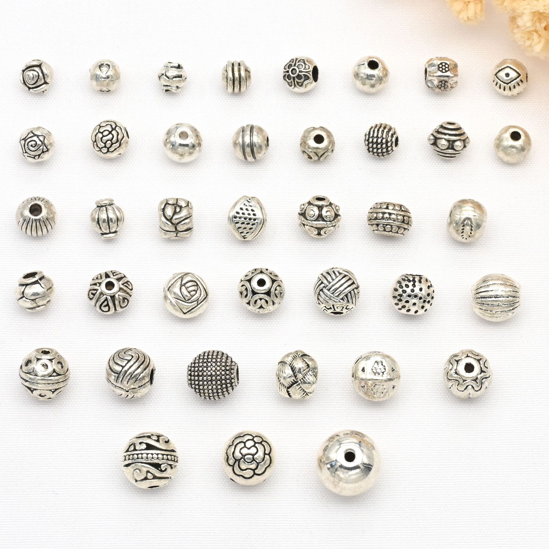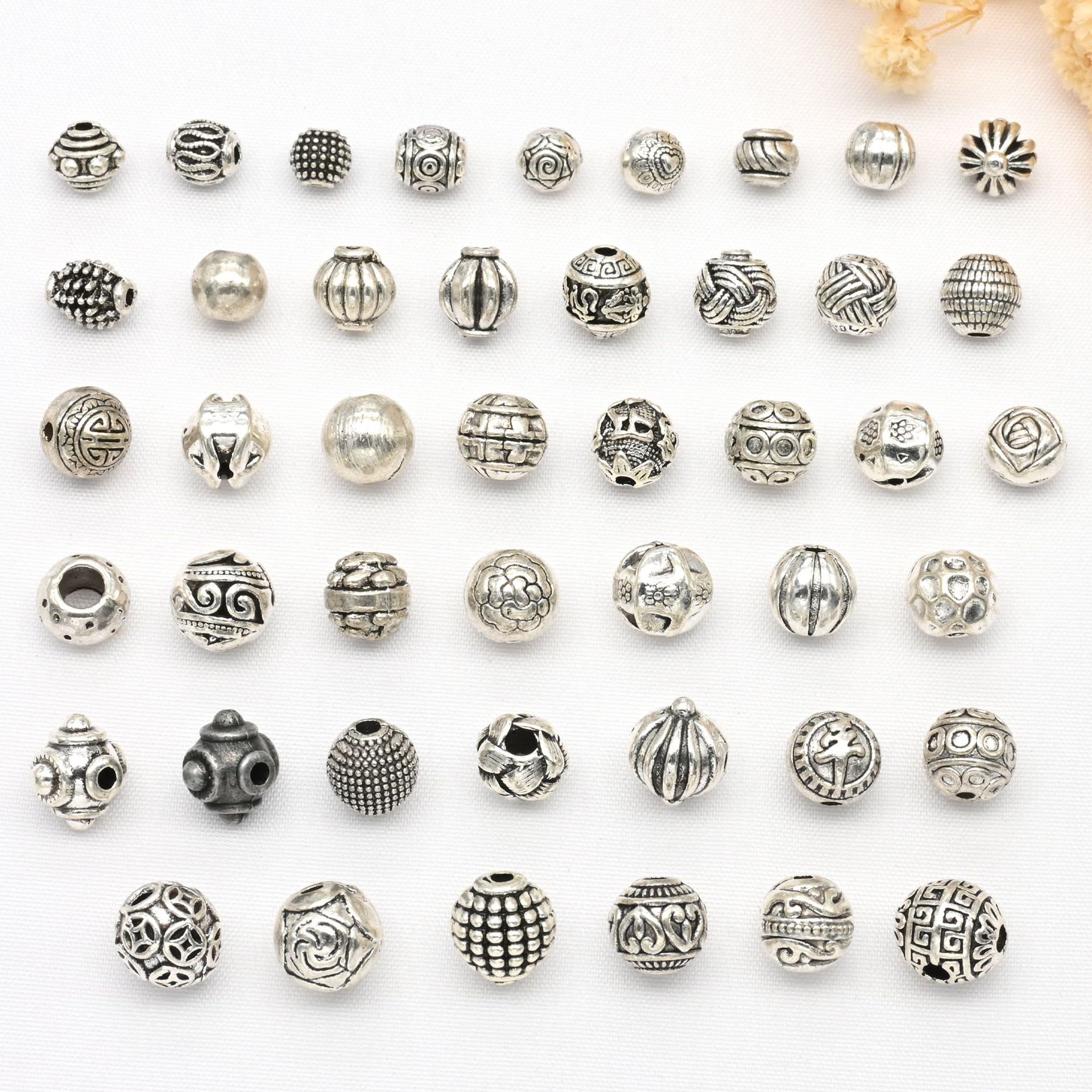 チベット銀製花托アクセサリー DIYブレスレット手芸用ビーズ素材 ジュエリー用小スペーサー レトロアンティーク銀製花托アクセサリー