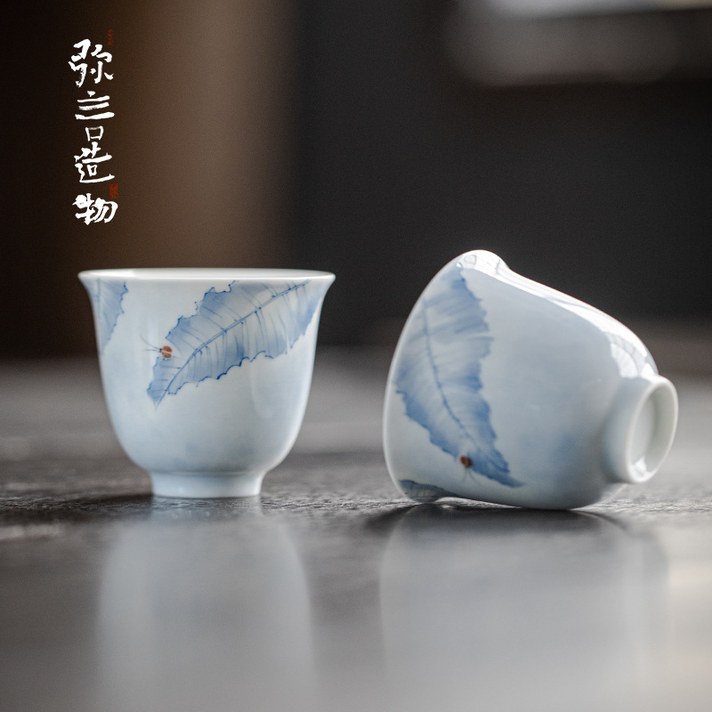 Miyan 青と白の純粋な手描きのバナナの葉のティーカップ手作りセラミック薄いティーカップカンフーティーセットマスターカップシングルカップ
