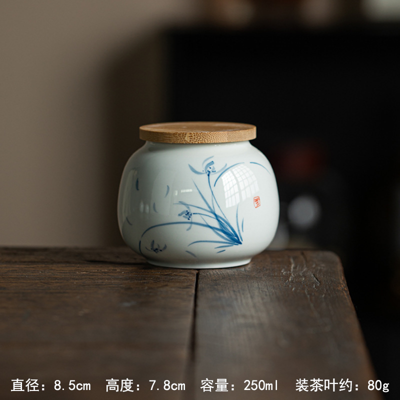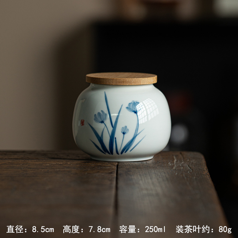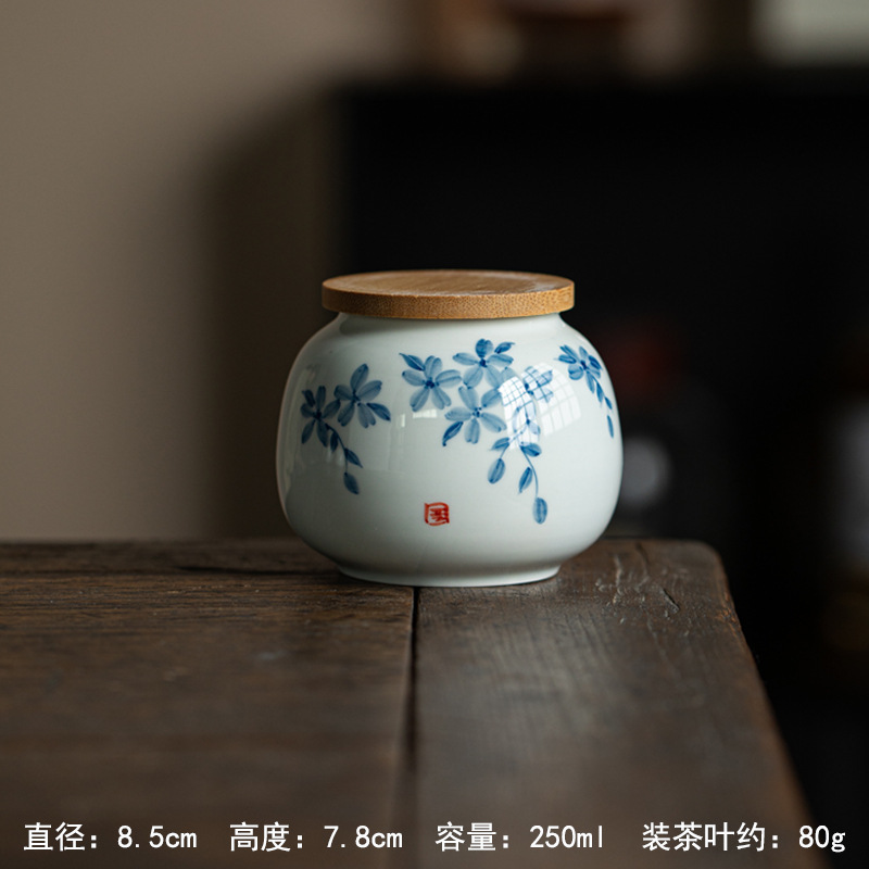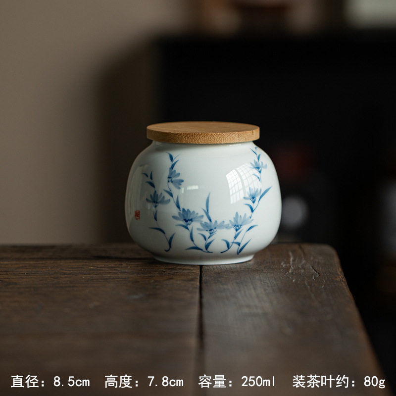 草木灰小デイジー茶葉缶密封缶防湿家庭用中国式携帯陶磁器保存茶缶トランペット茶倉