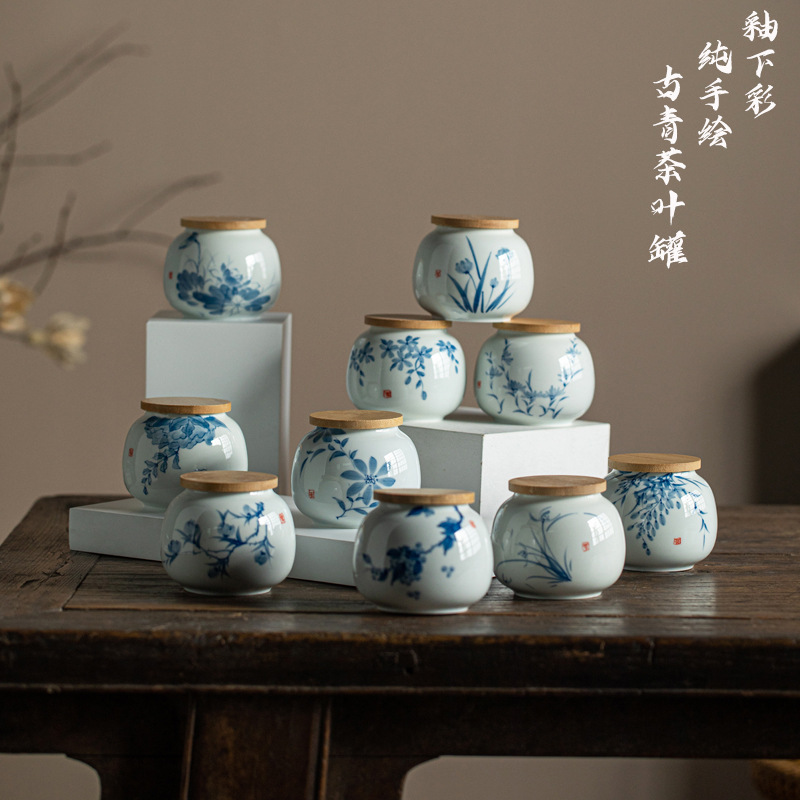 温鶯新柳草木灰茶葉缶密封缶陶磁器缶高級携帯小型防湿ミニ貯蔵缶