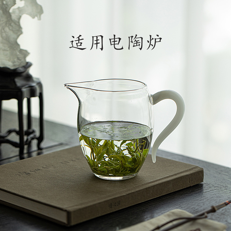 泥人叙日本式白玉ガラス公道杯高ホウ素シリコン耐熱大容量茶海家庭用茶器公杯