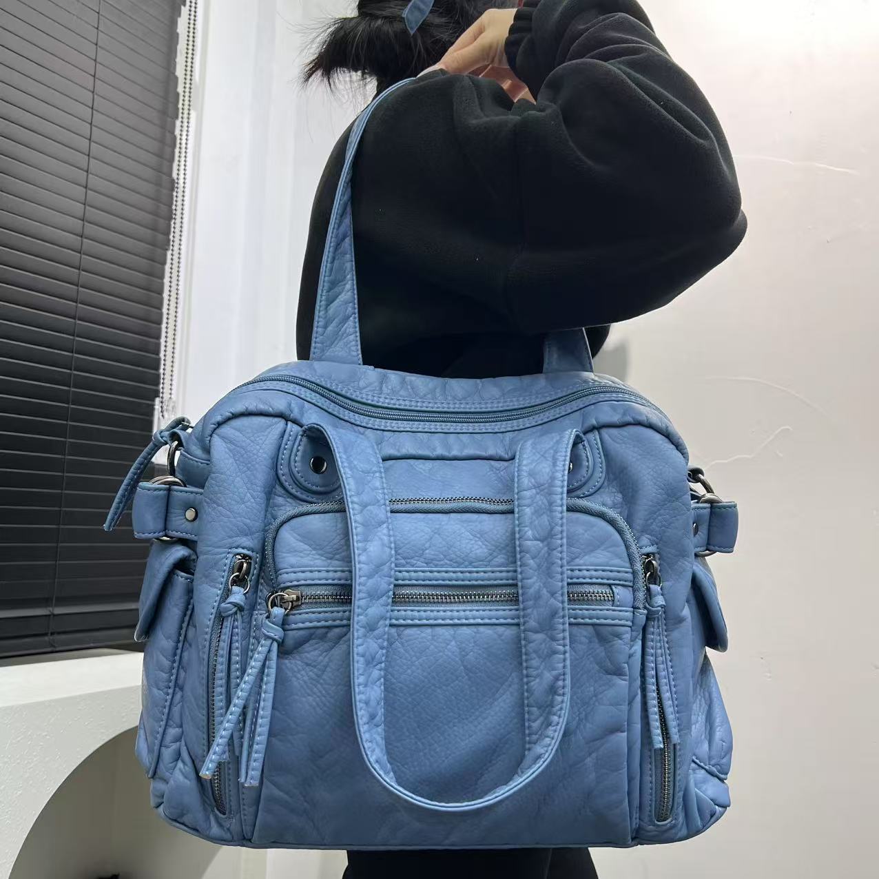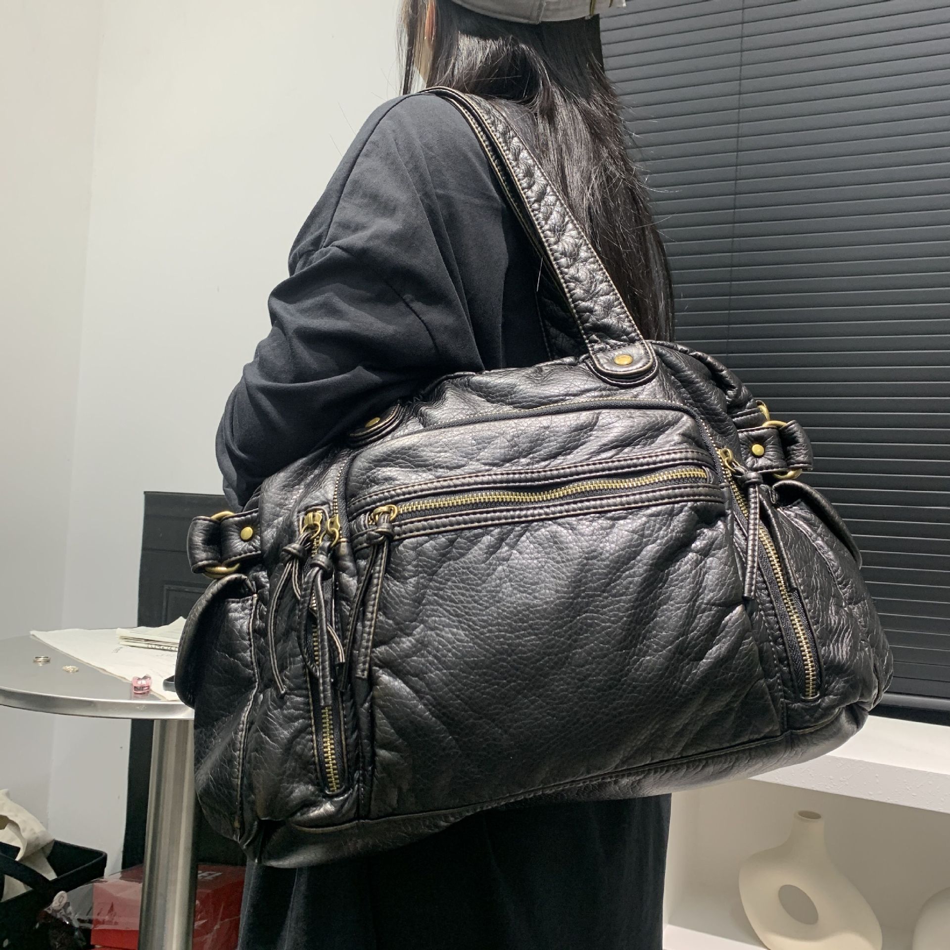 夏の新型卸売り洗濯PU旅行バッグ2025欧米ファッションレトロ大容量手提げショルダーバッグ
