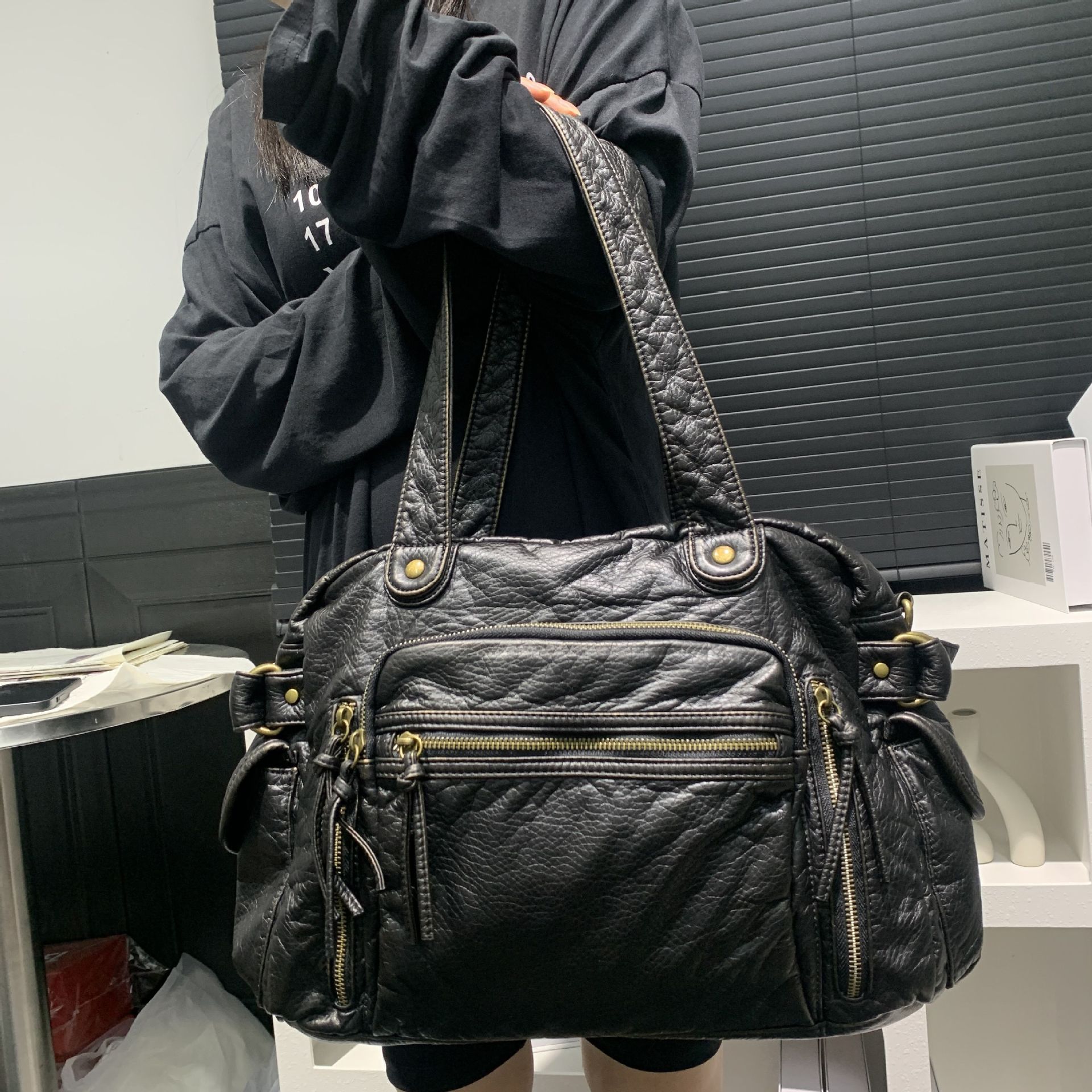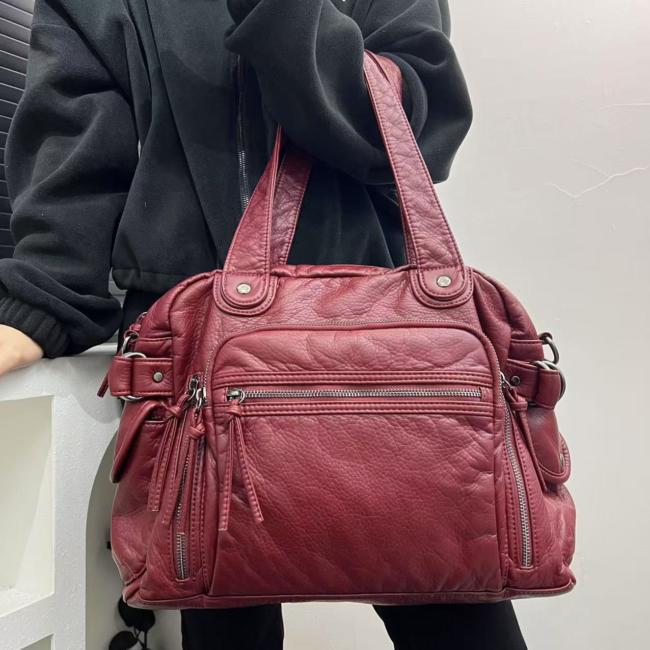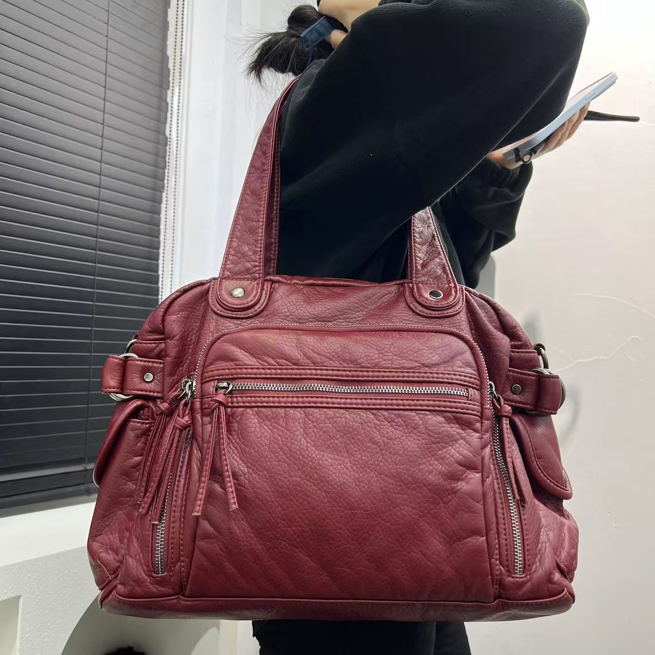 真皮软皮时尚潮流女复古大容量手提包通勤百搭旅行单肩斜挎包
