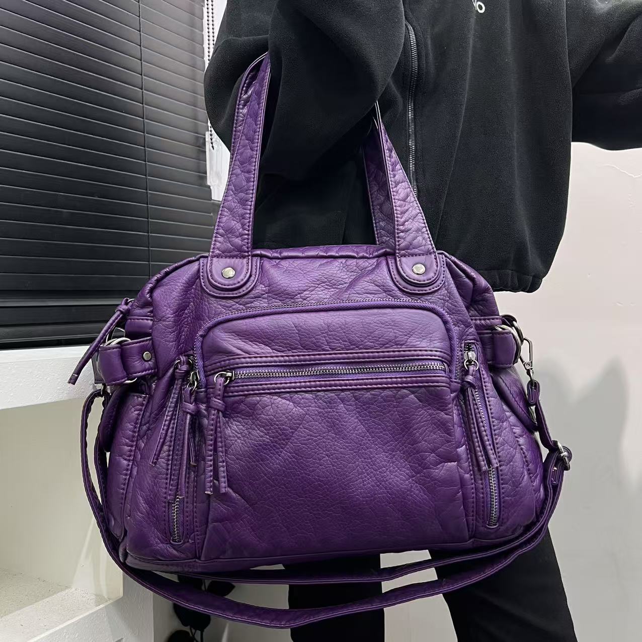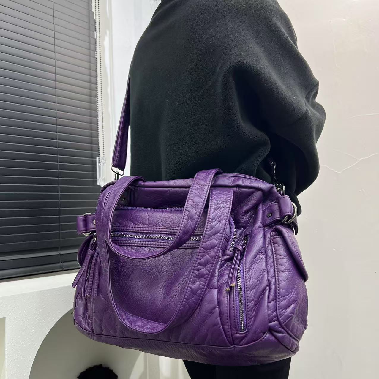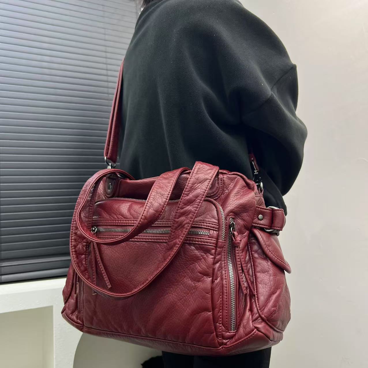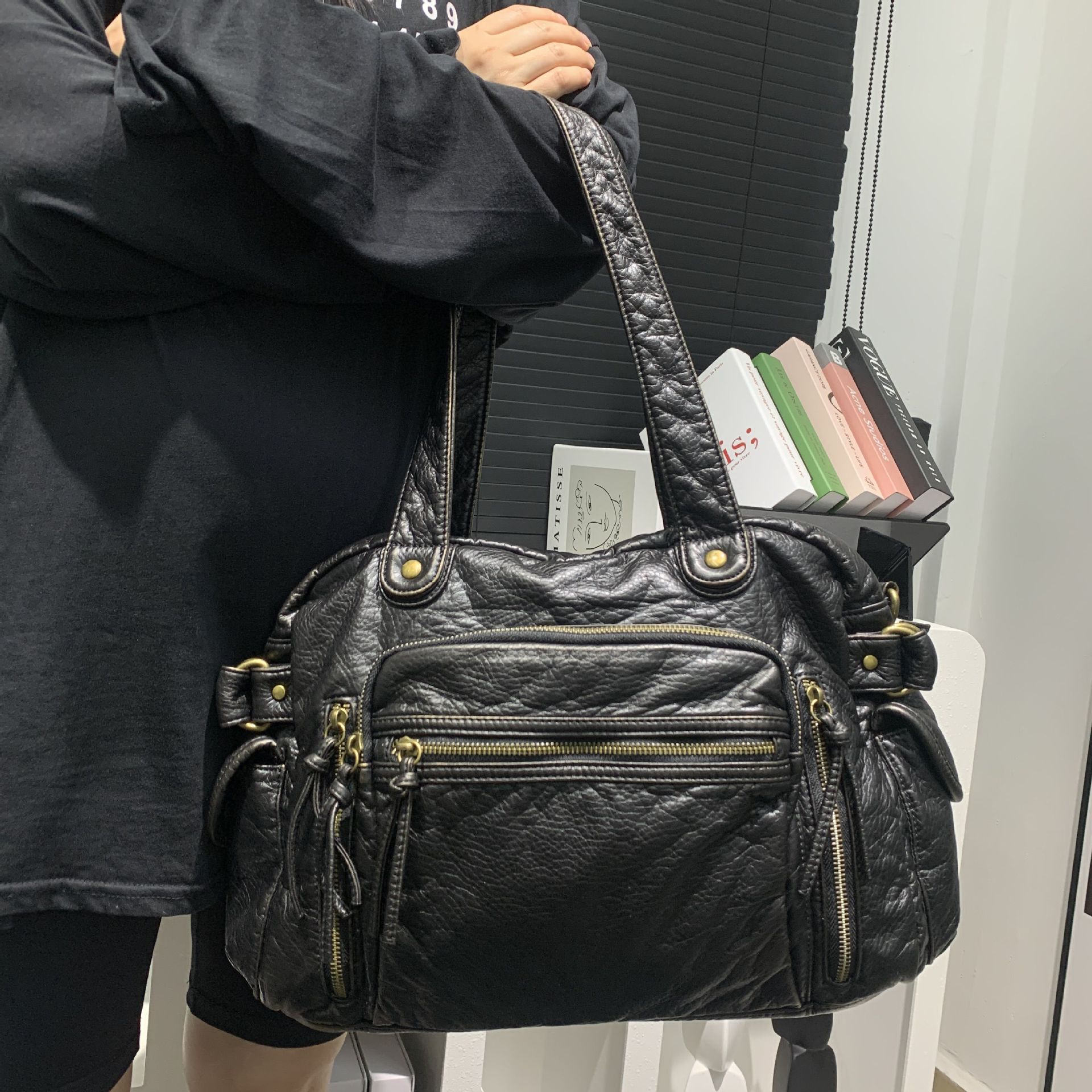 真皮软皮时尚潮流女复古大容量手提包通勤百搭旅行单肩斜挎包