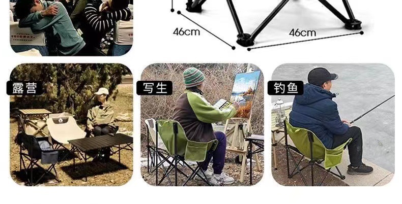 屋外折り畳み椅子高背月椅子公園腰掛け釣り椅子レジャー椅子荷重キャンプピクニック自車運転旅行
