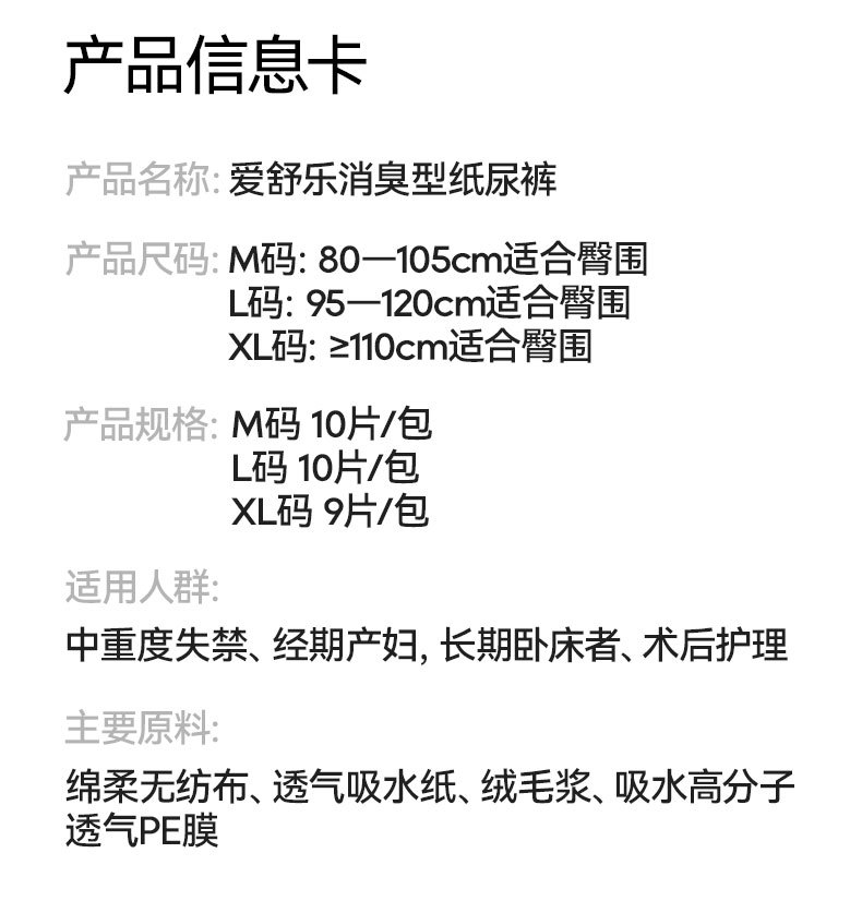 愛舒楽シングルバッグ基本型消臭型成人パンツタイプ老人尿不湿男女共通