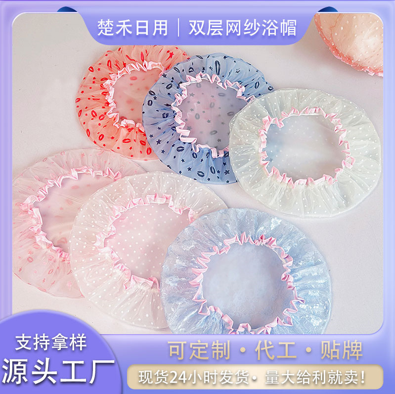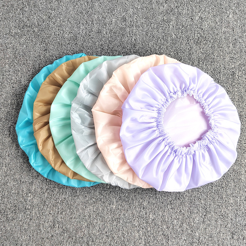 メーカー卸売り二重防水シャワーキャップかわいいシャワーキャップはロゴの多規格成人シャワーキャップの防油煙金を決めることができる