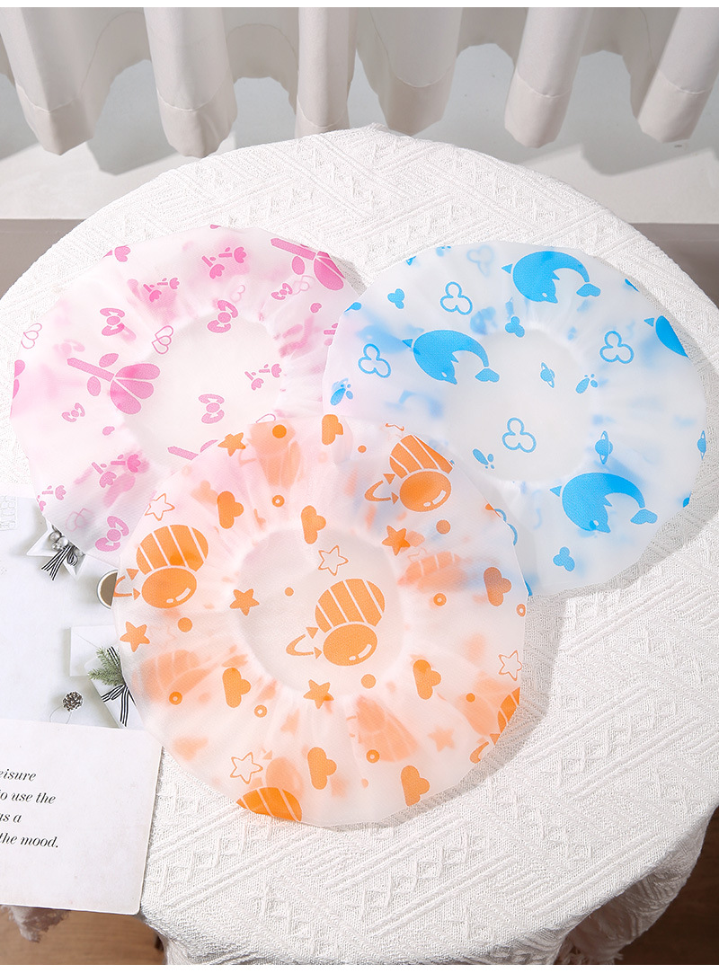 大人男女使い捨てヘッドシャワーキャッププリントカラーシャワーキャップpe透明厚手家庭用テンションシャワーキャップ