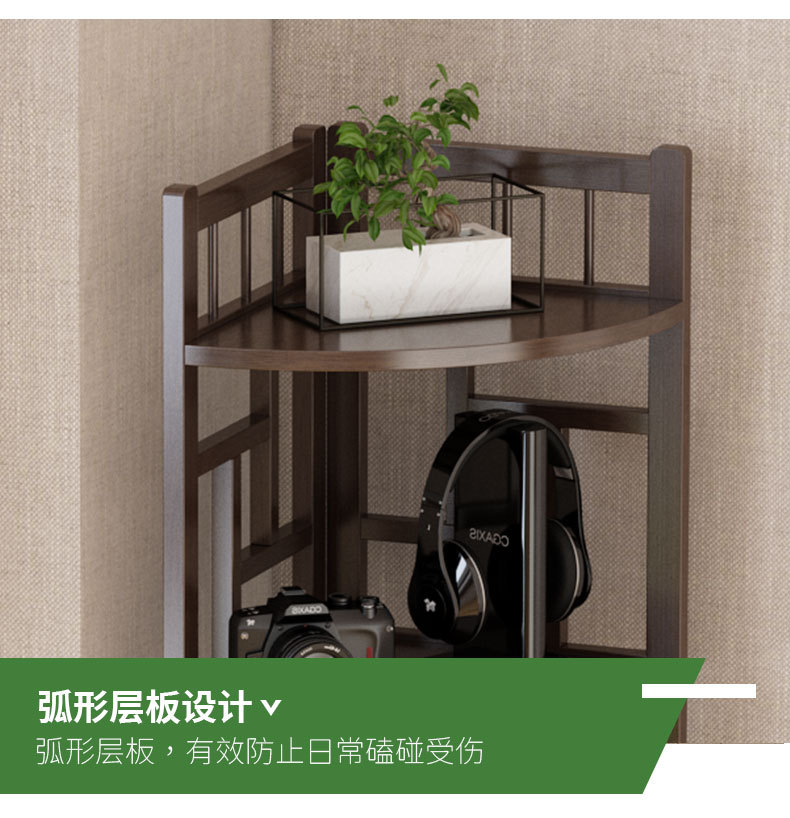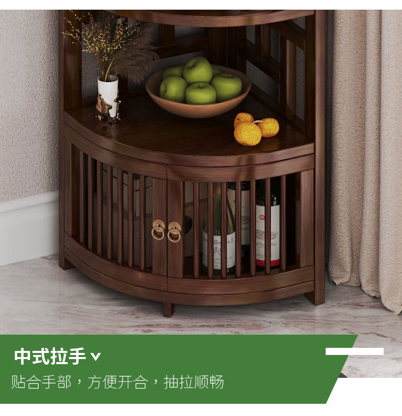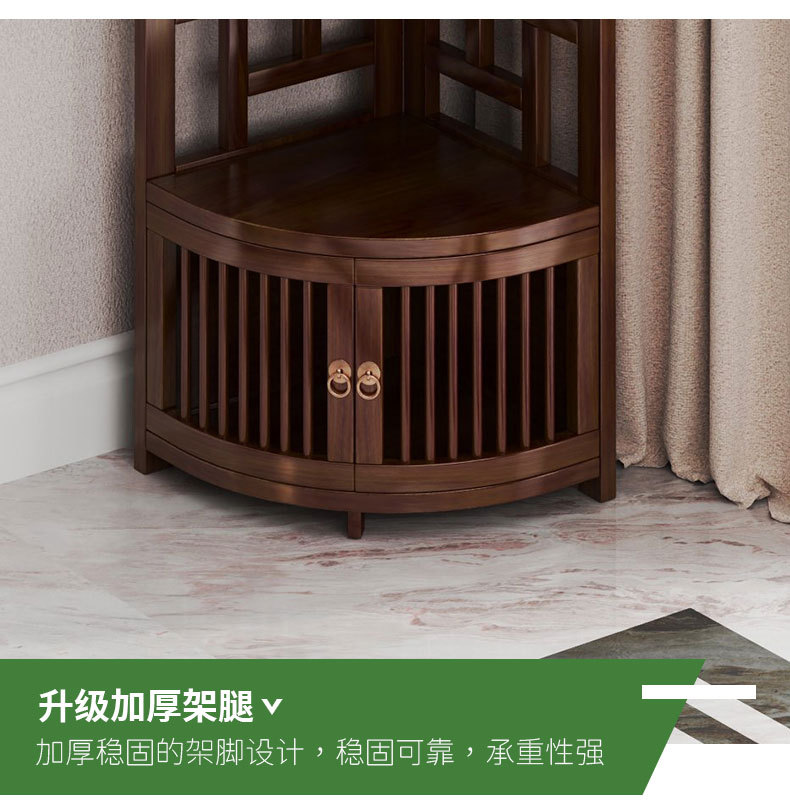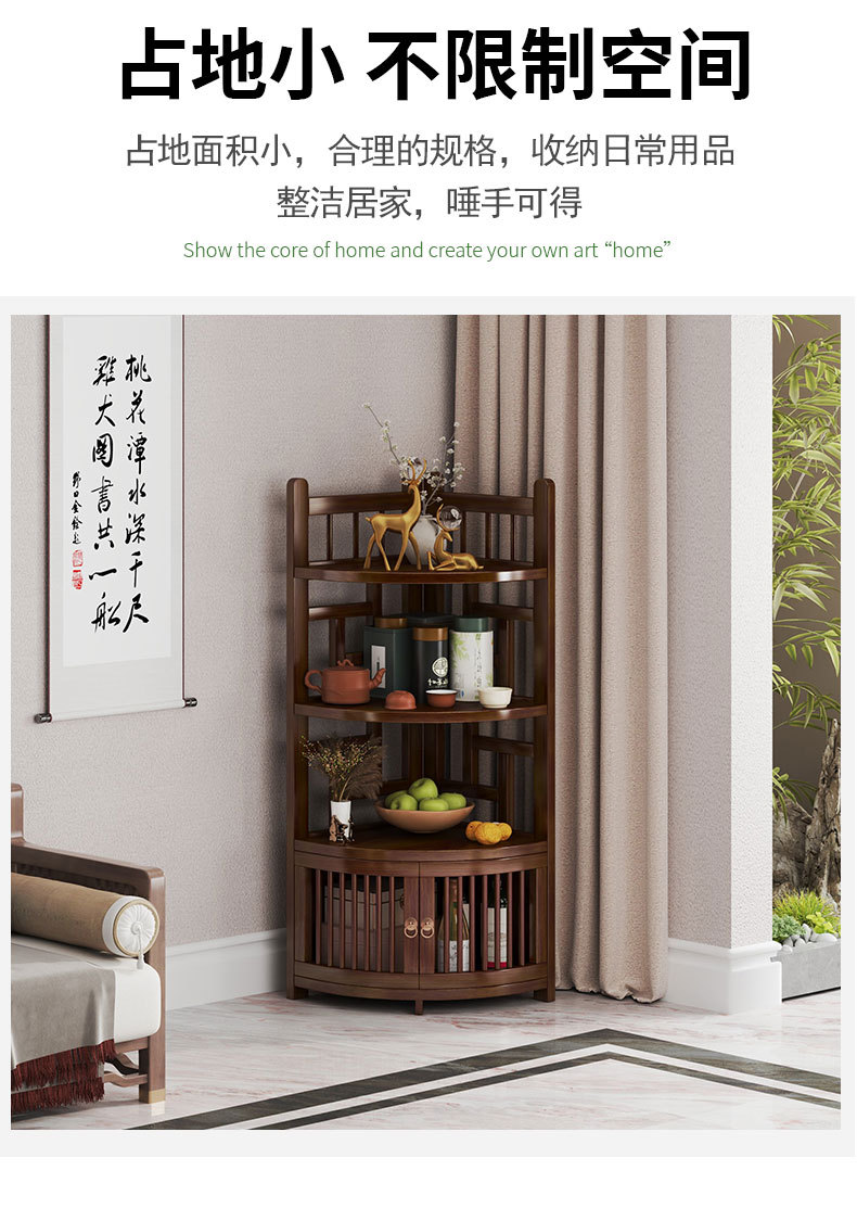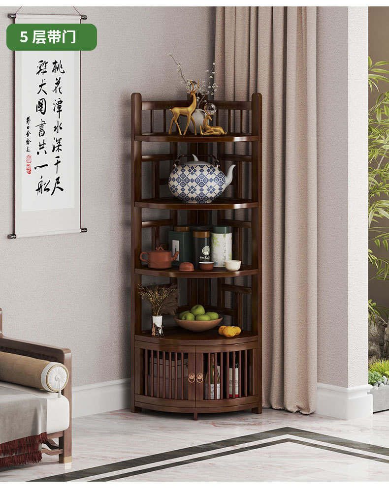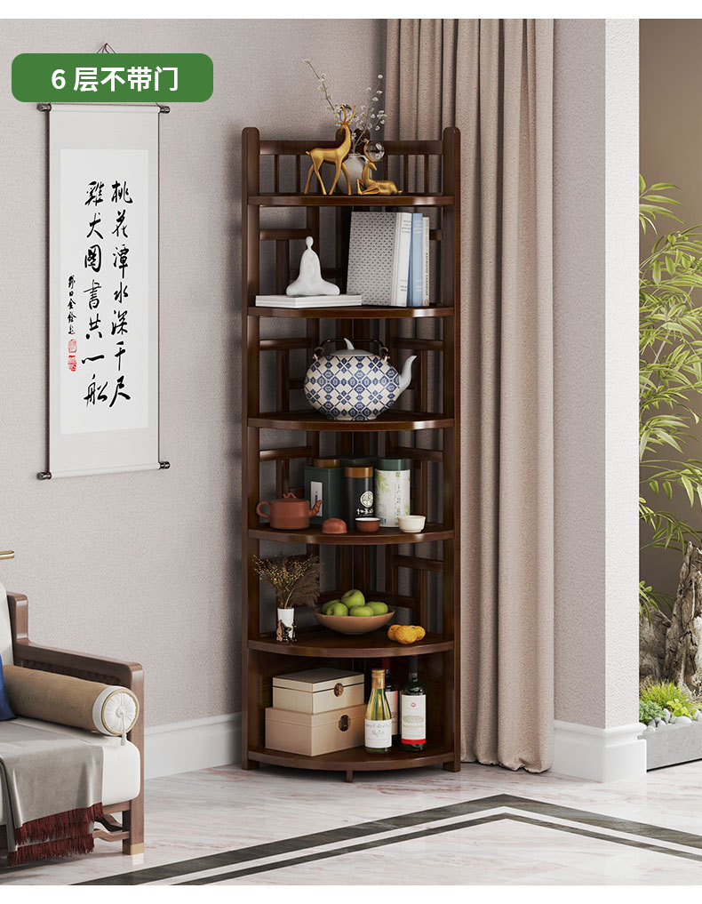 新しい中国風コーナー収納ラックホームリビングルームコーナーキャビネット非無垢材多層収納ラックシンプルな扇形収納キャビネット