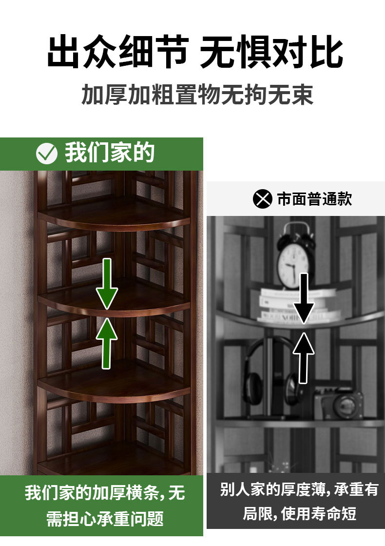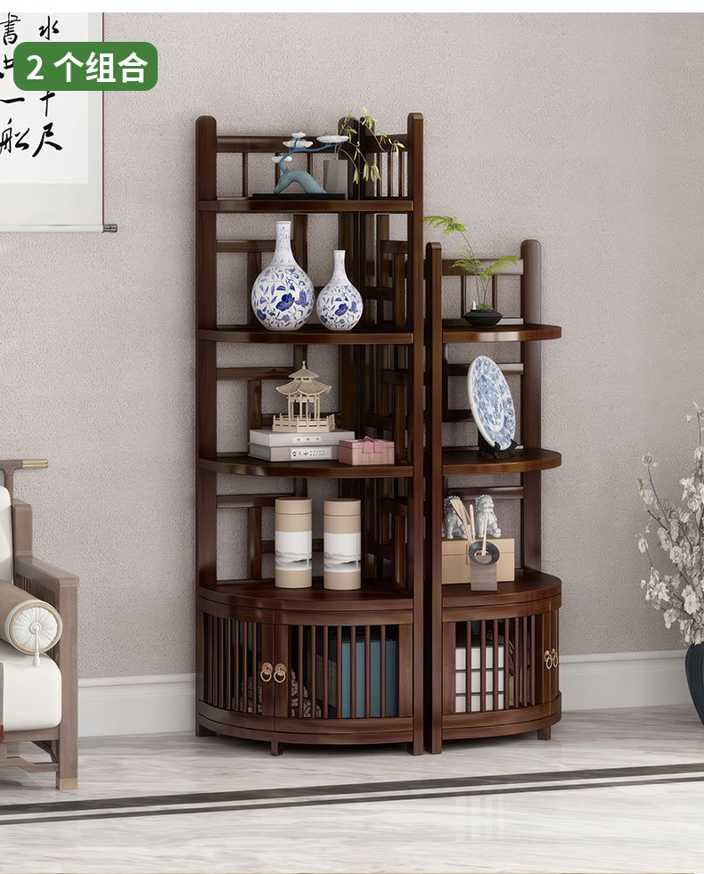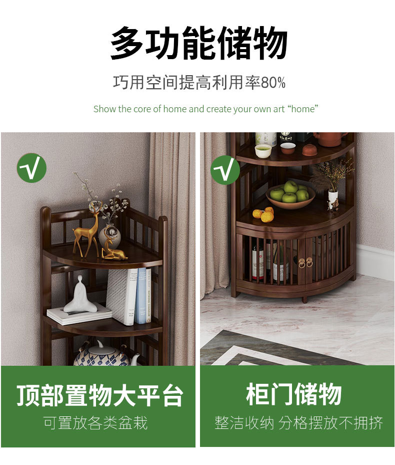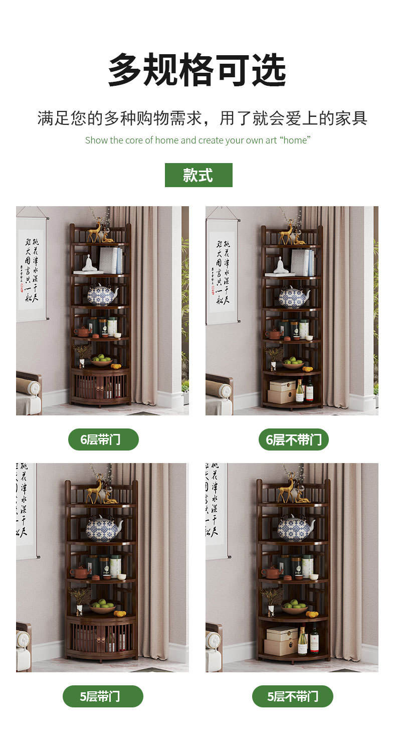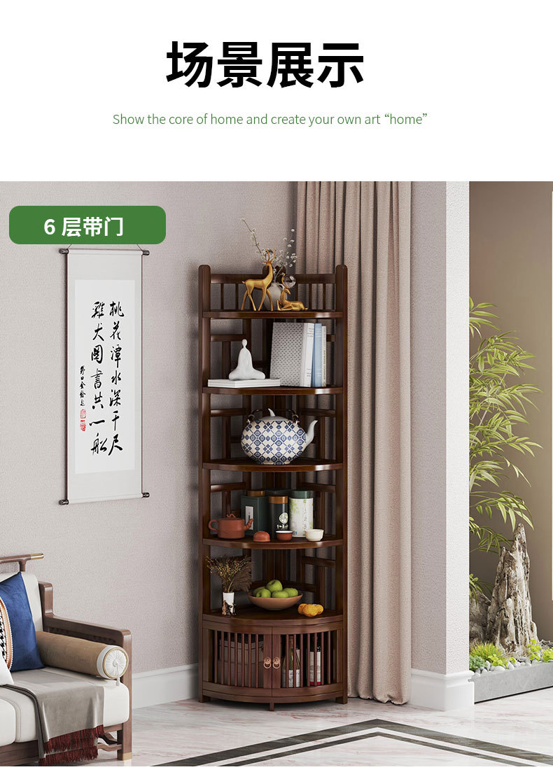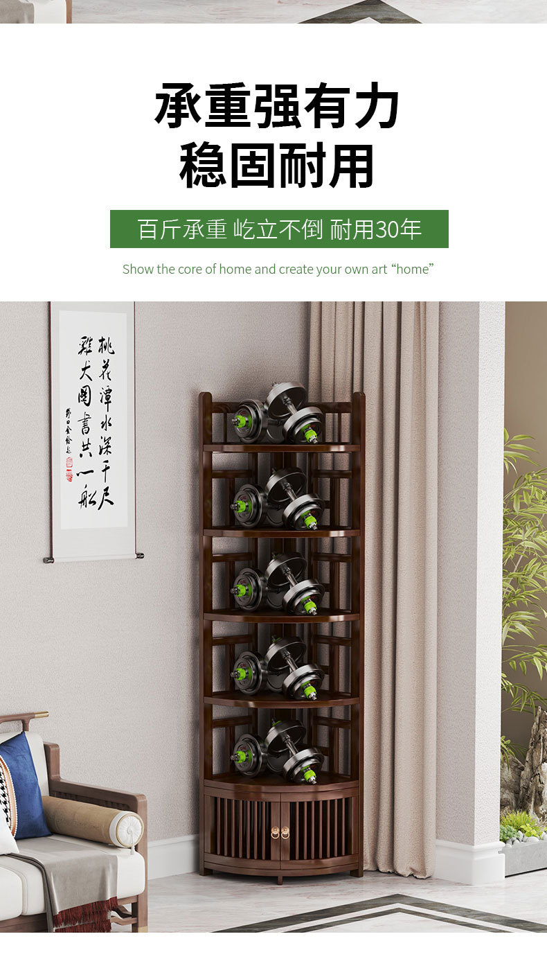 新しい中国風コーナー収納ラックホームリビングルームコーナーキャビネット非無垢材多層収納ラックシンプルな扇形収納キャビネット