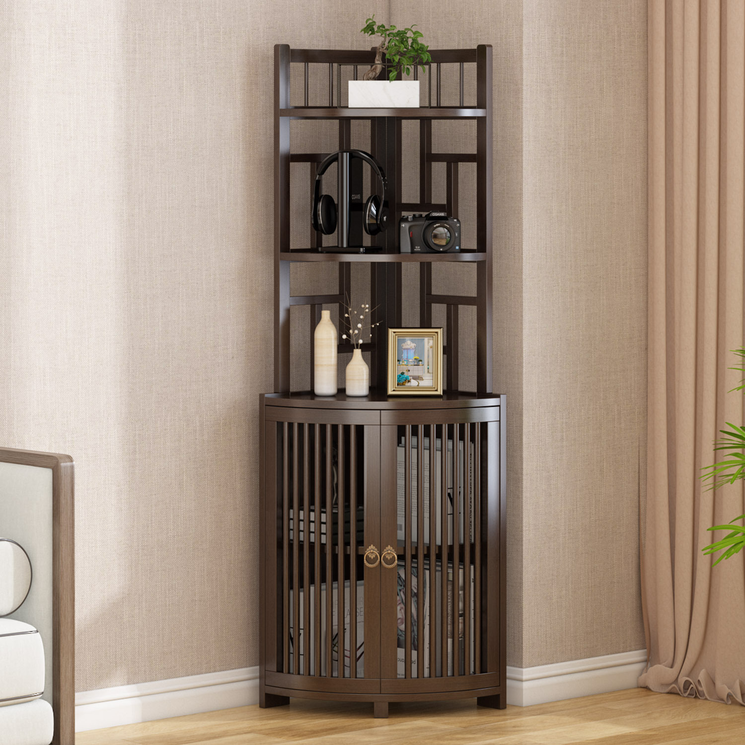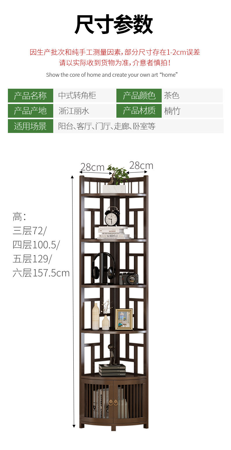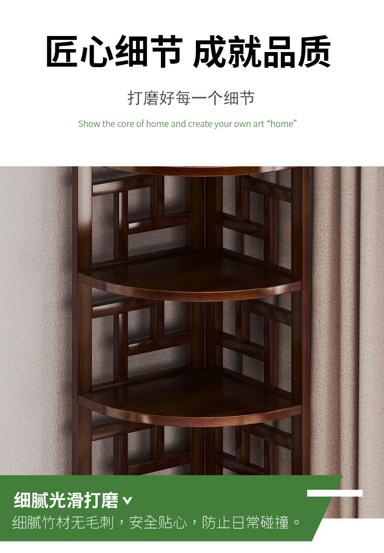 转角置物架书架转角柜墙角柜餐厅角落柜柜边角柜竹制新中式风格