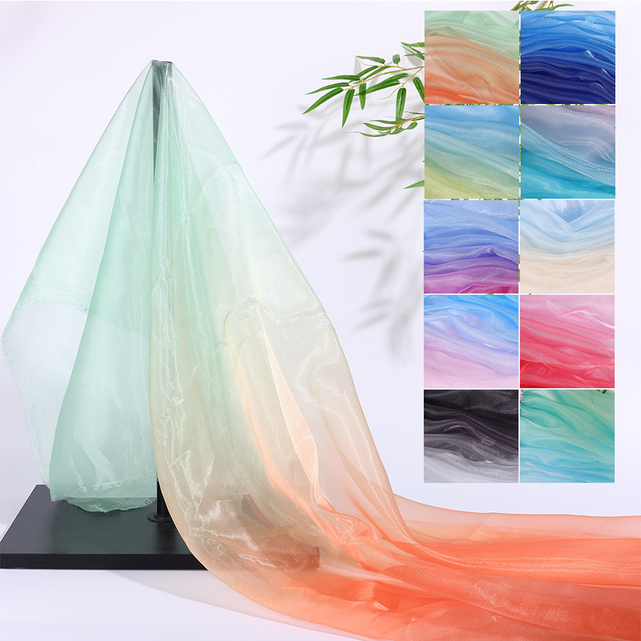 グラデーションフラッシュ欧根紗布地珠光通過色舞台服装漢服スカート装飾背景糸卸売り