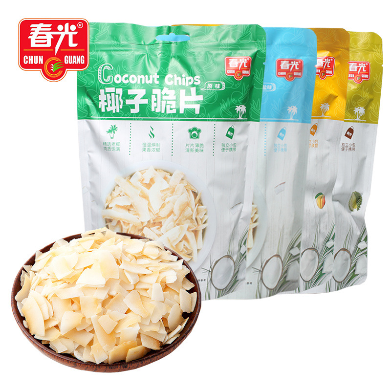春光海南名物ココナッツクリスプ 60 グラム * 3 袋ローストココナッツフレーク果肉ドライフードスナックスナック