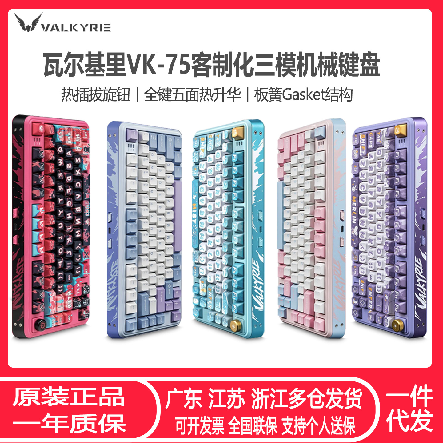 VALKYRIE瓦尔基里VK75客制化机械键盘 三模2.4G/有线/蓝牙线性轴