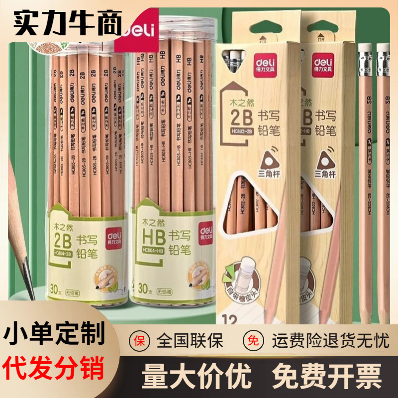 得力原木鉛筆HB2B学生児童書字鉛筆三角棒書写ペン練習鉛筆