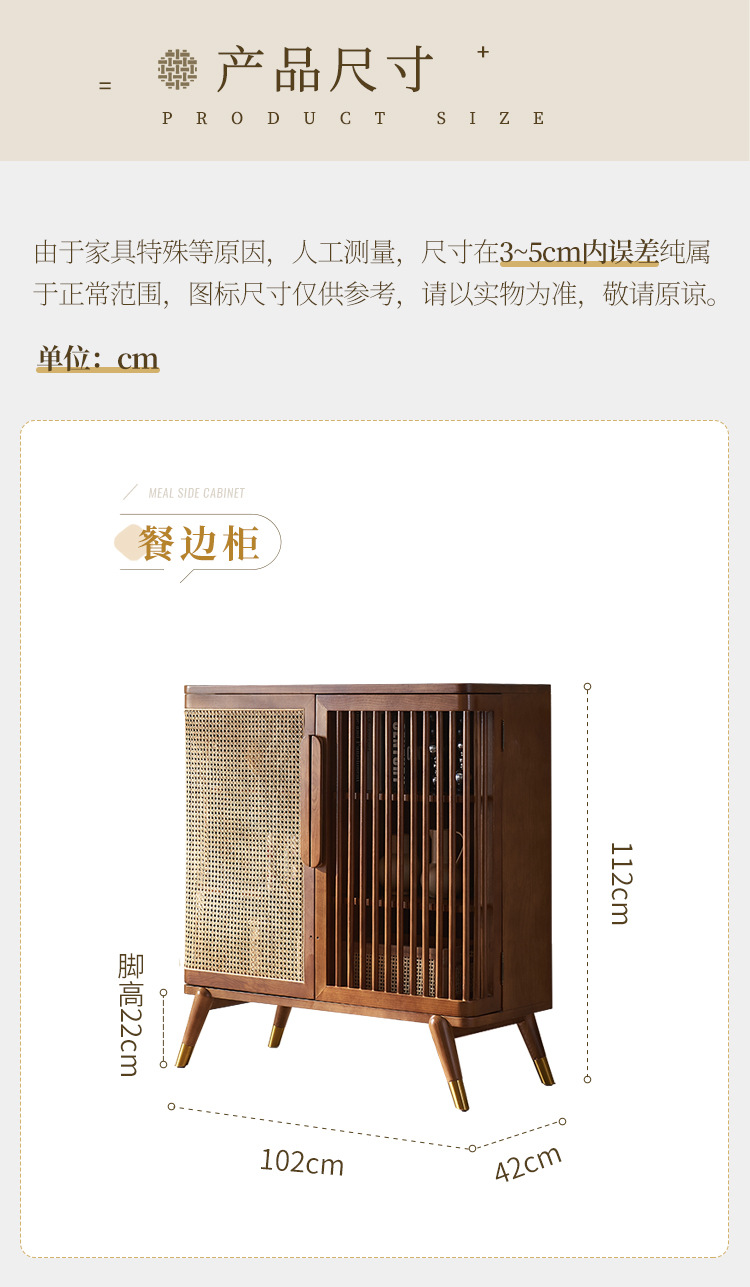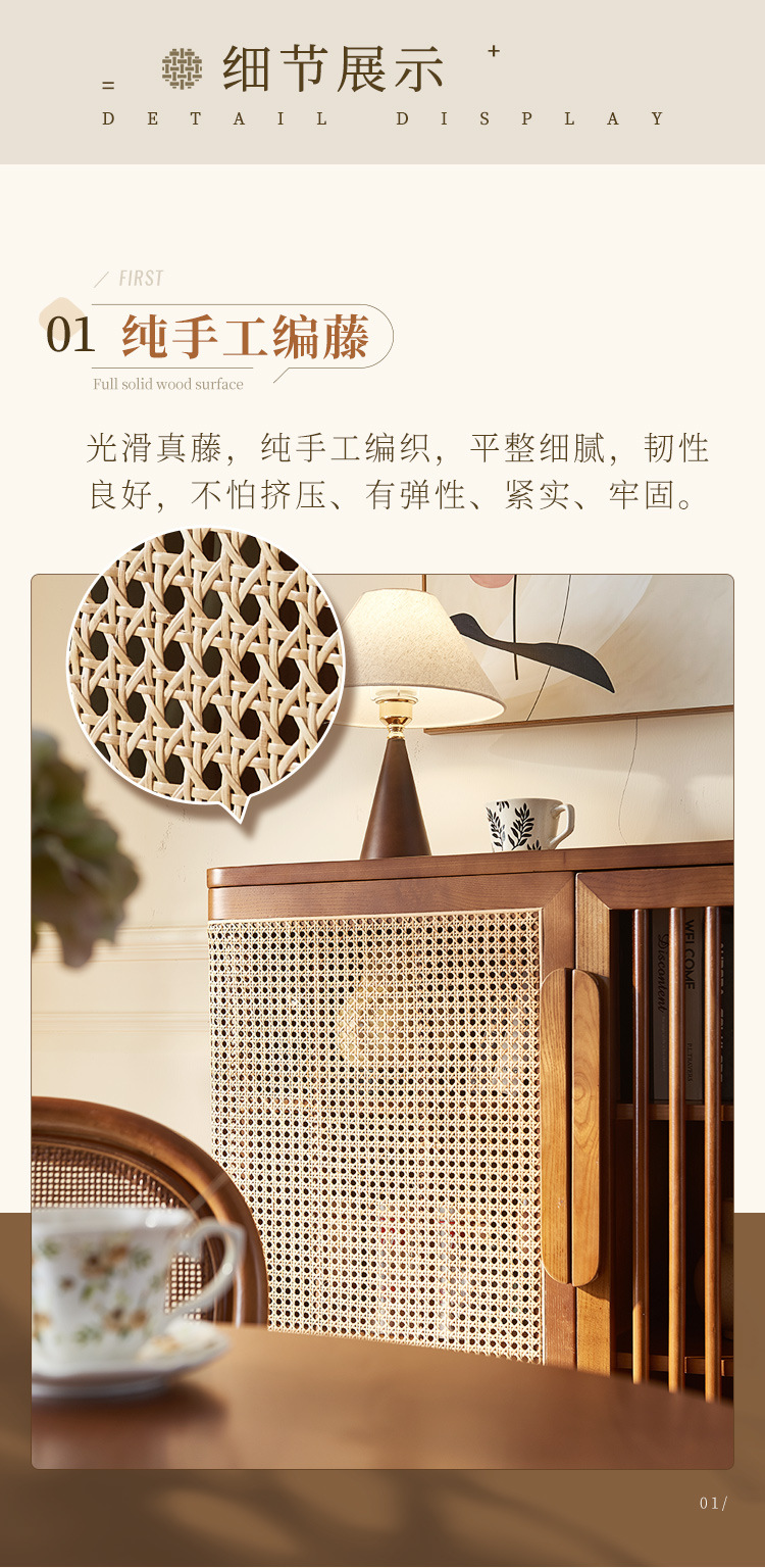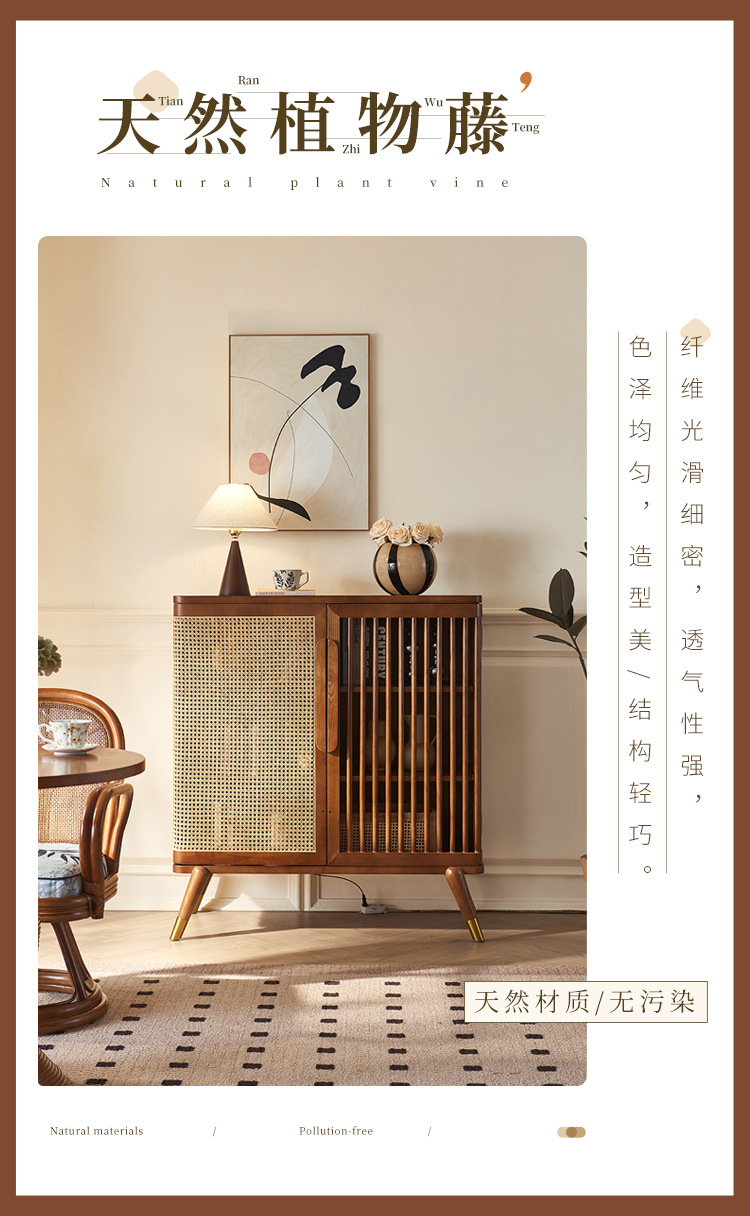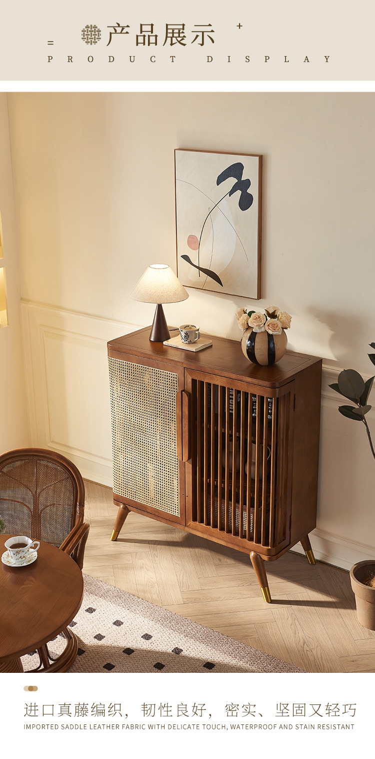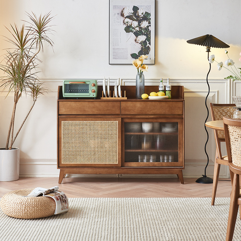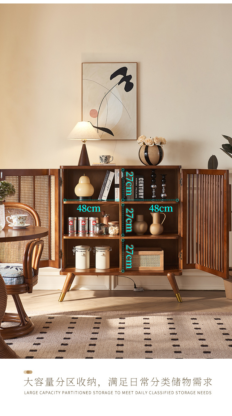 北欧籐無垢材サイドボードわびさびスタイル家庭用多機能引き出し付き多機能3ドア分類収納キャビネット