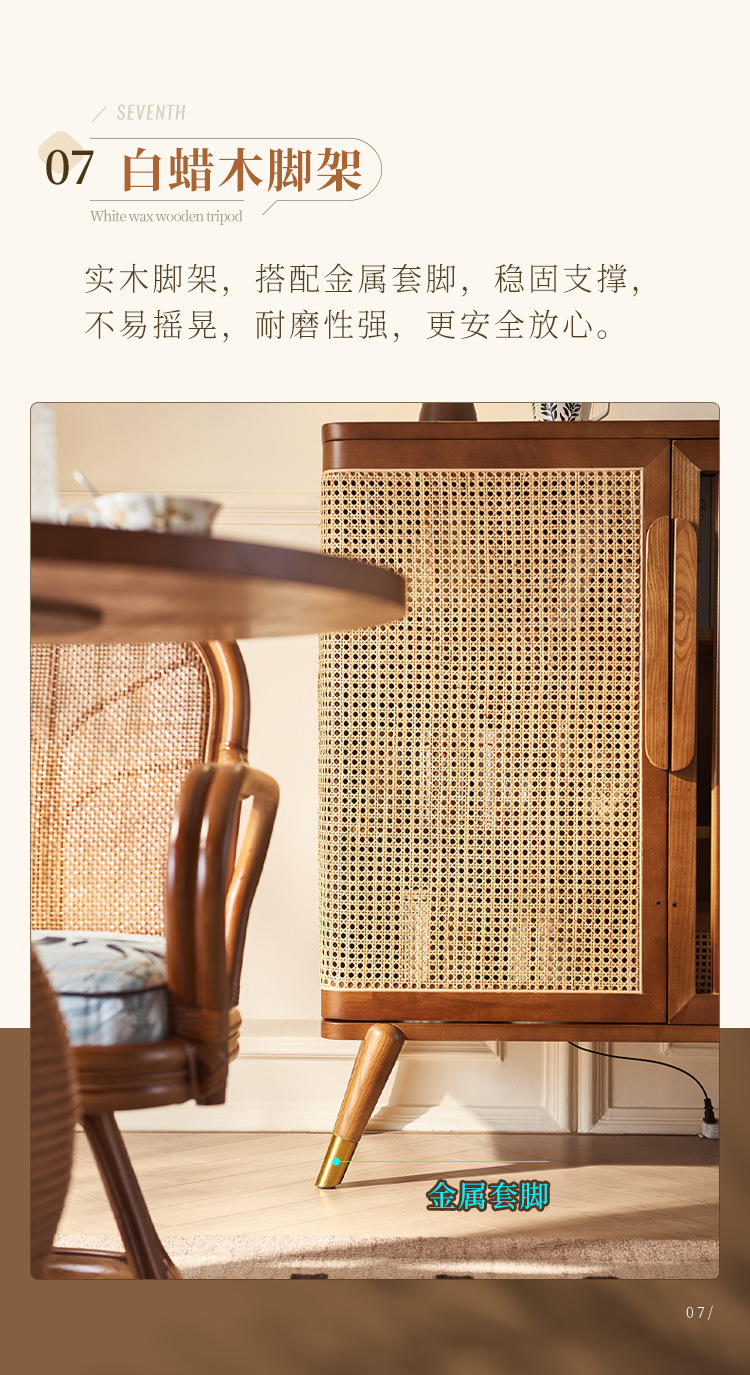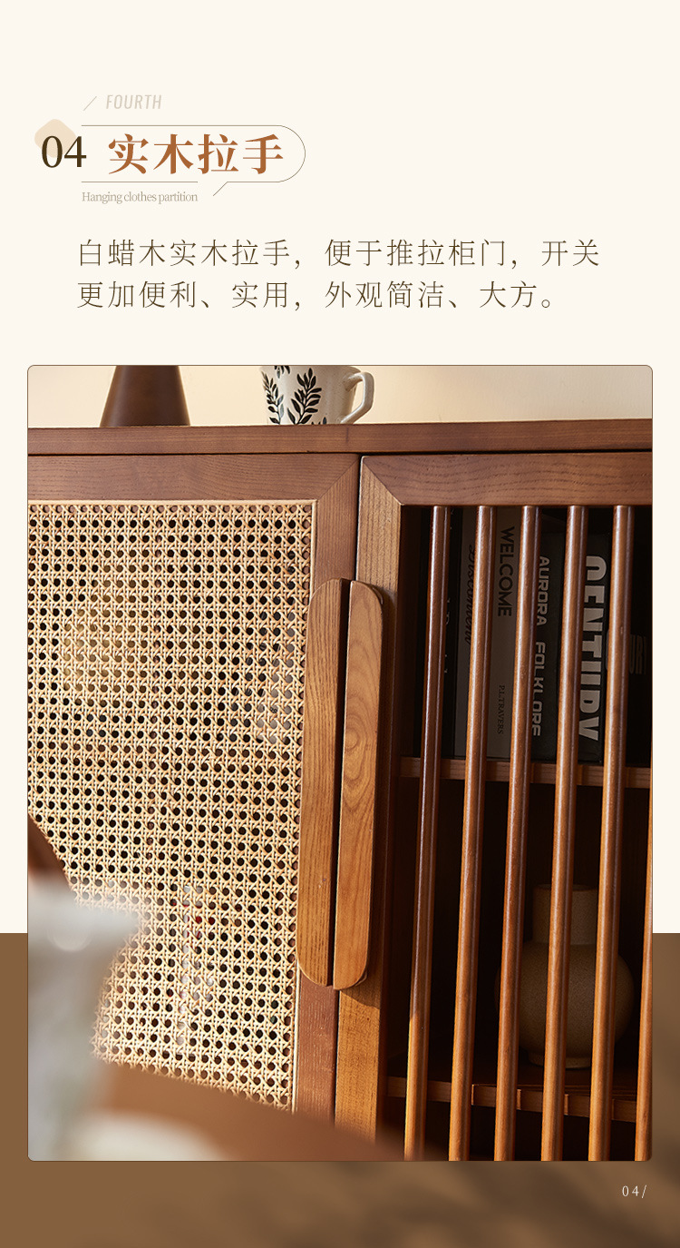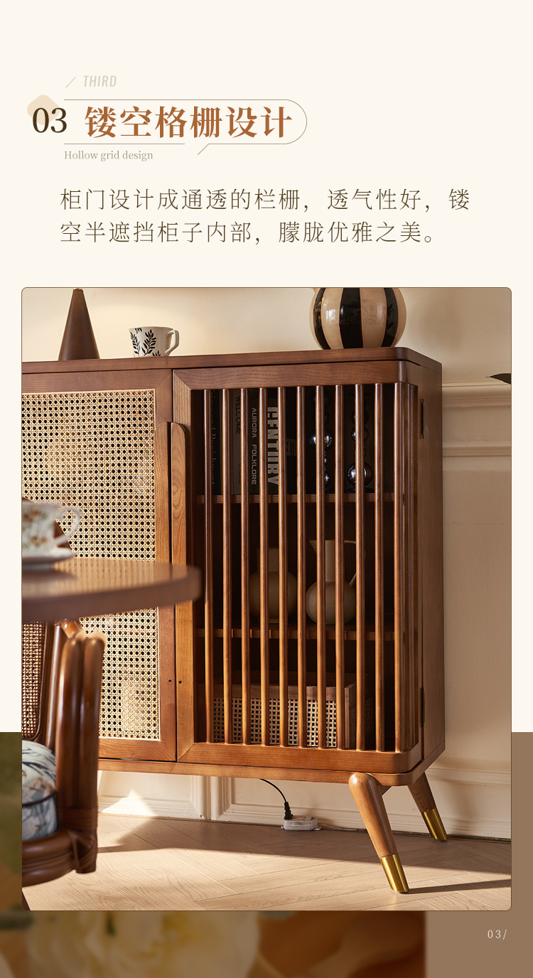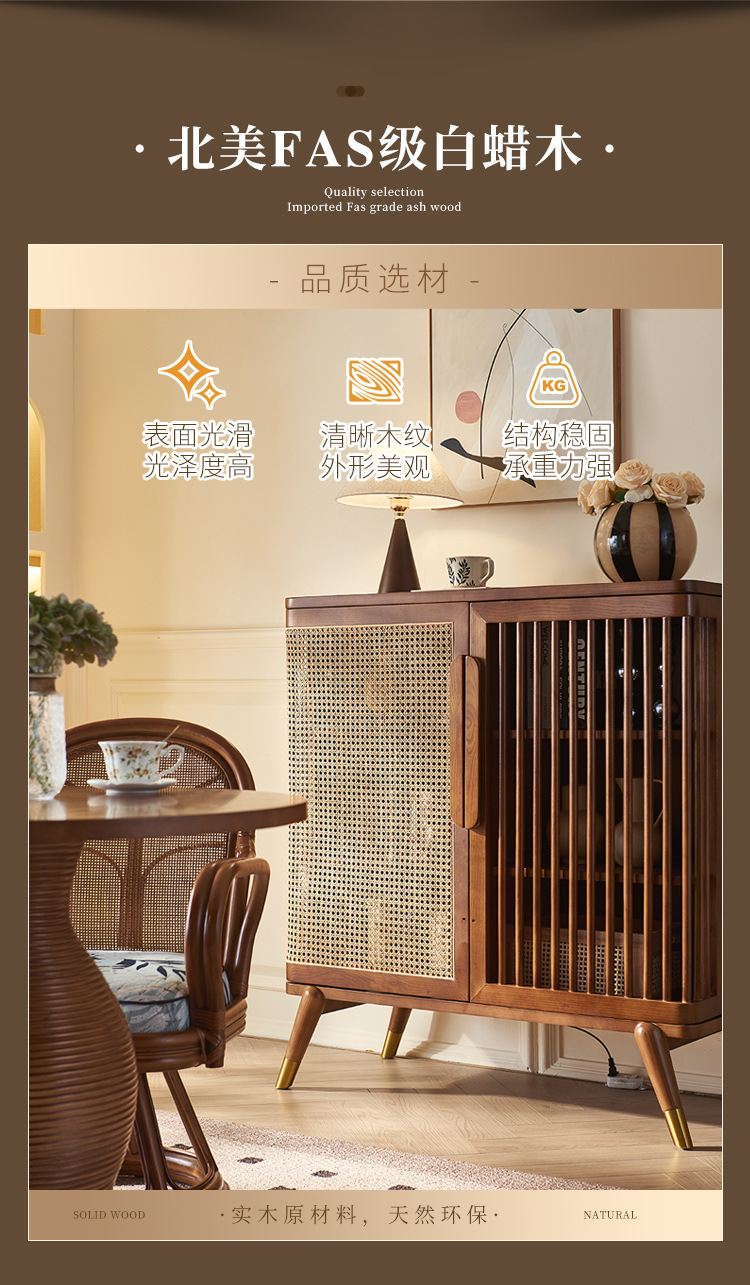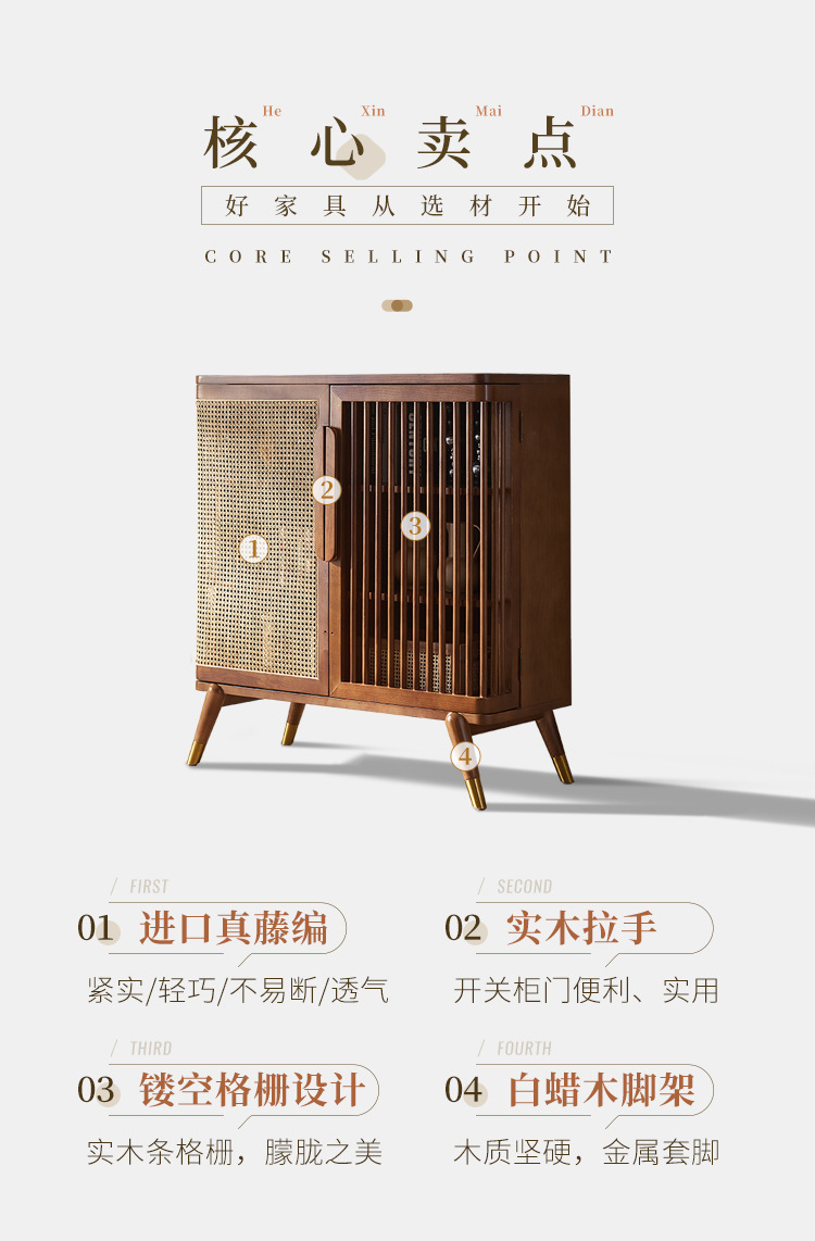 北欧籐無垢材サイドボードわびさびスタイル家庭用多機能引き出し付き多機能3ドア分類収納キャビネット