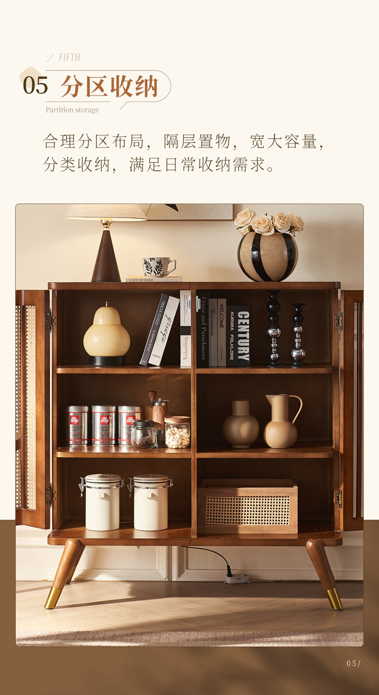 寂風実木六斗戸棚現代家庭用民宿シンプルリビング収納引き出し食堂サイドキャビネット