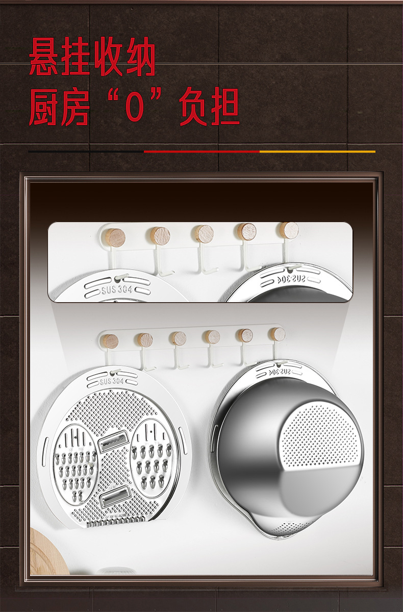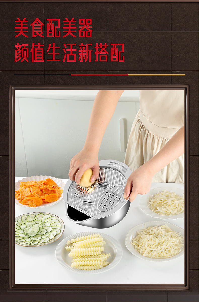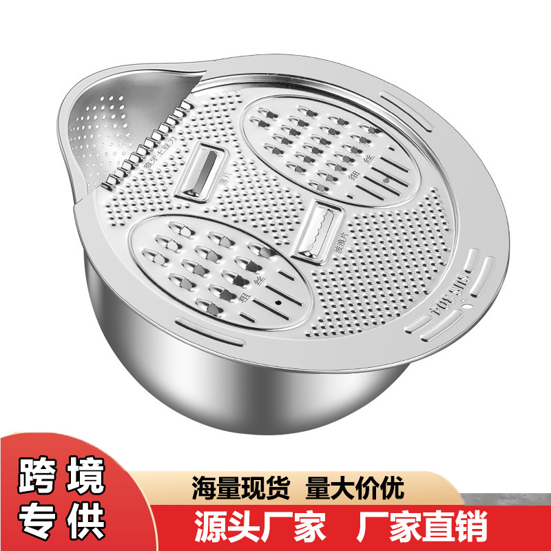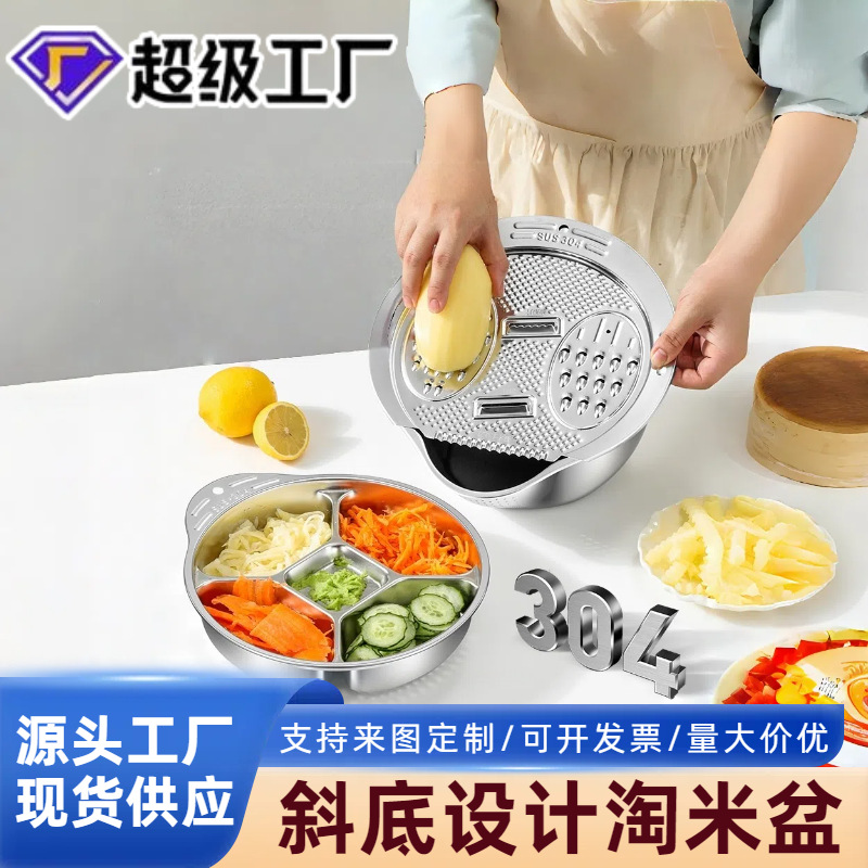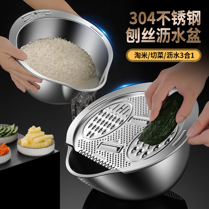 304ステンレスの野菜切りの神器の切り切り切りのジャガイモの糸拭き器の野菜のたらいの米のかごの水たまりの多機能